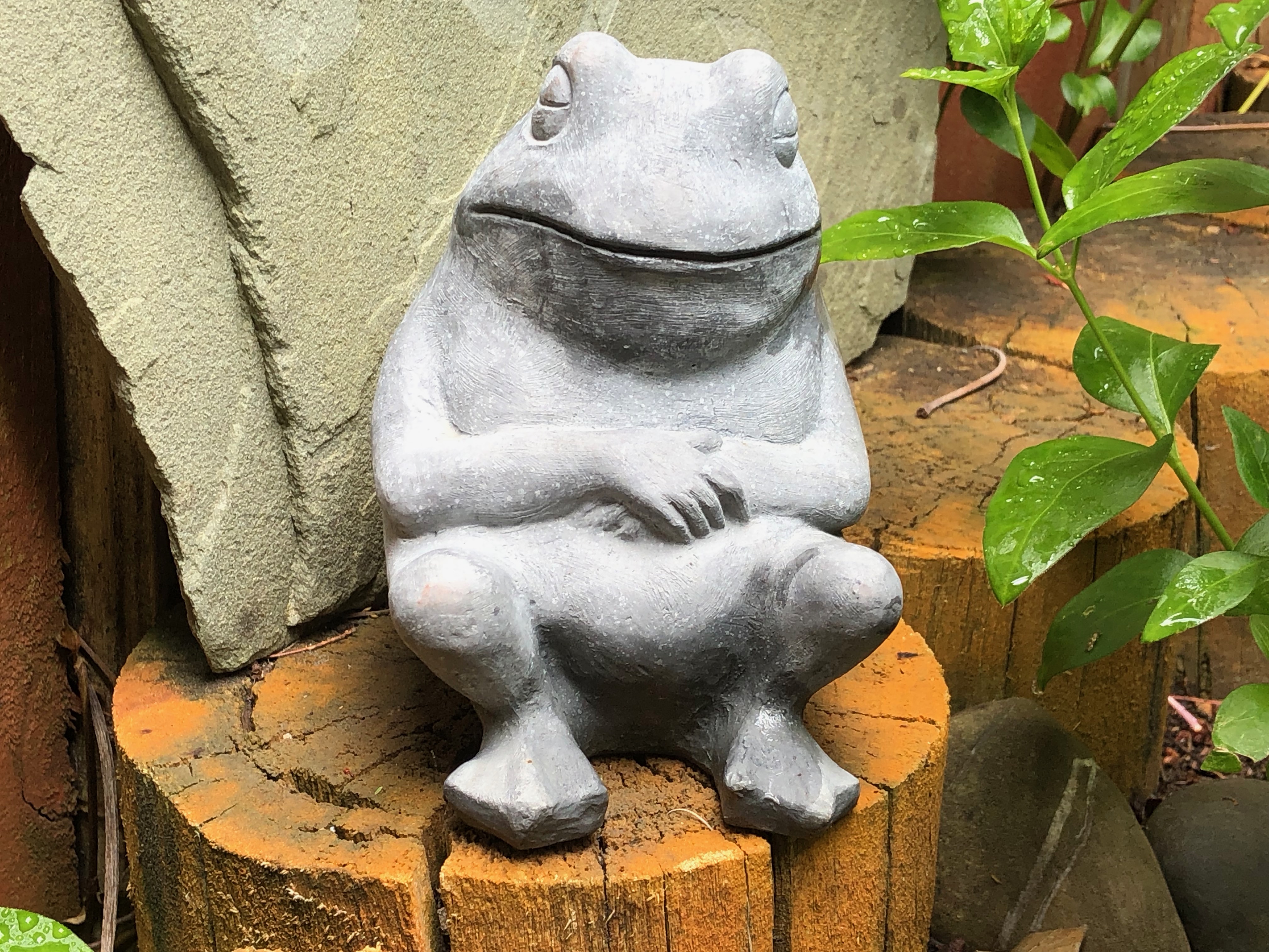 My mother gave me this frog years ago and still he greets all who enter our garden, says enter tranquillity and peace.
