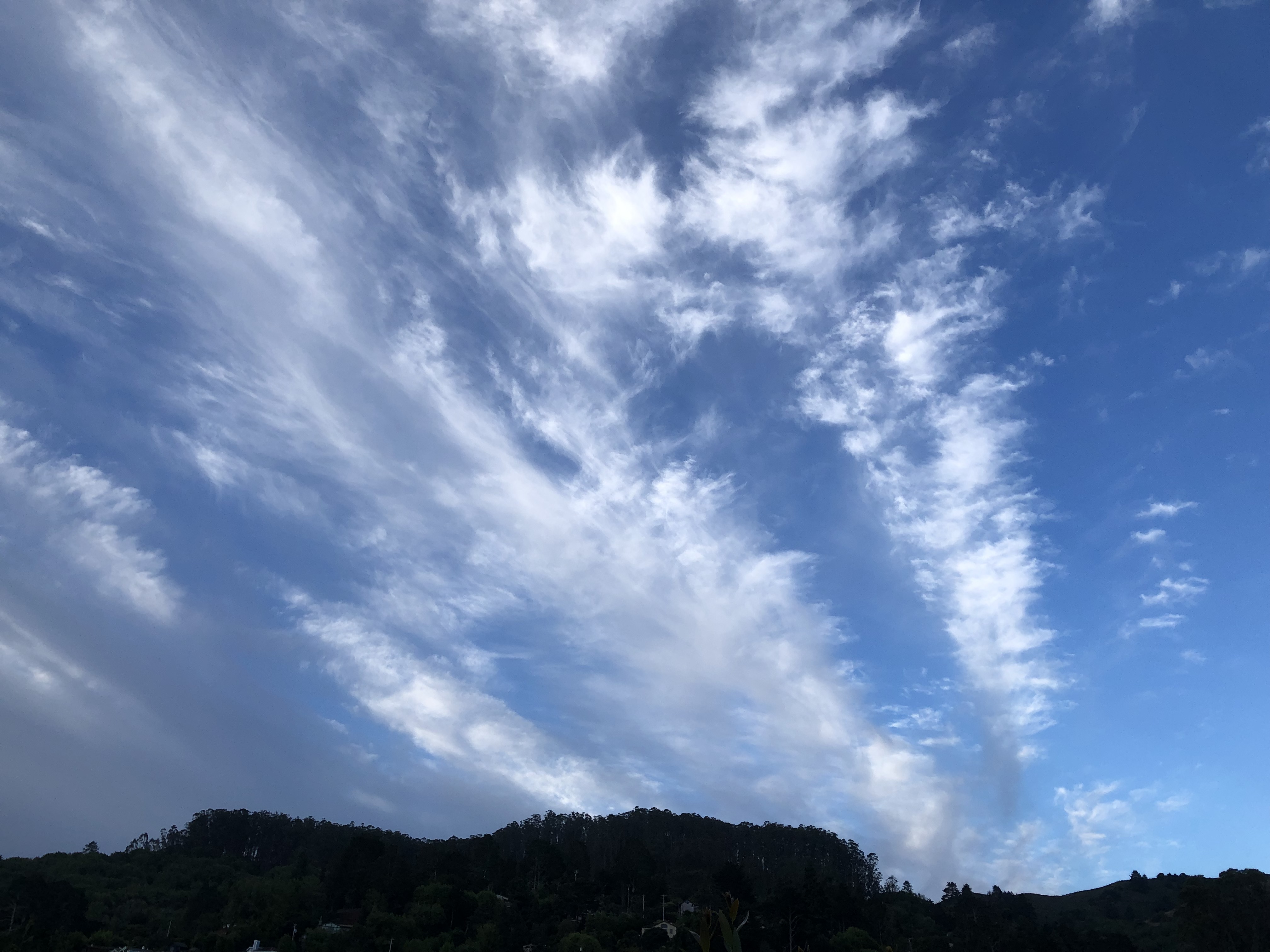 Then, the sunset last night was bright red – fire, and now this morning I see soft, white clouds – layers layering the sky.