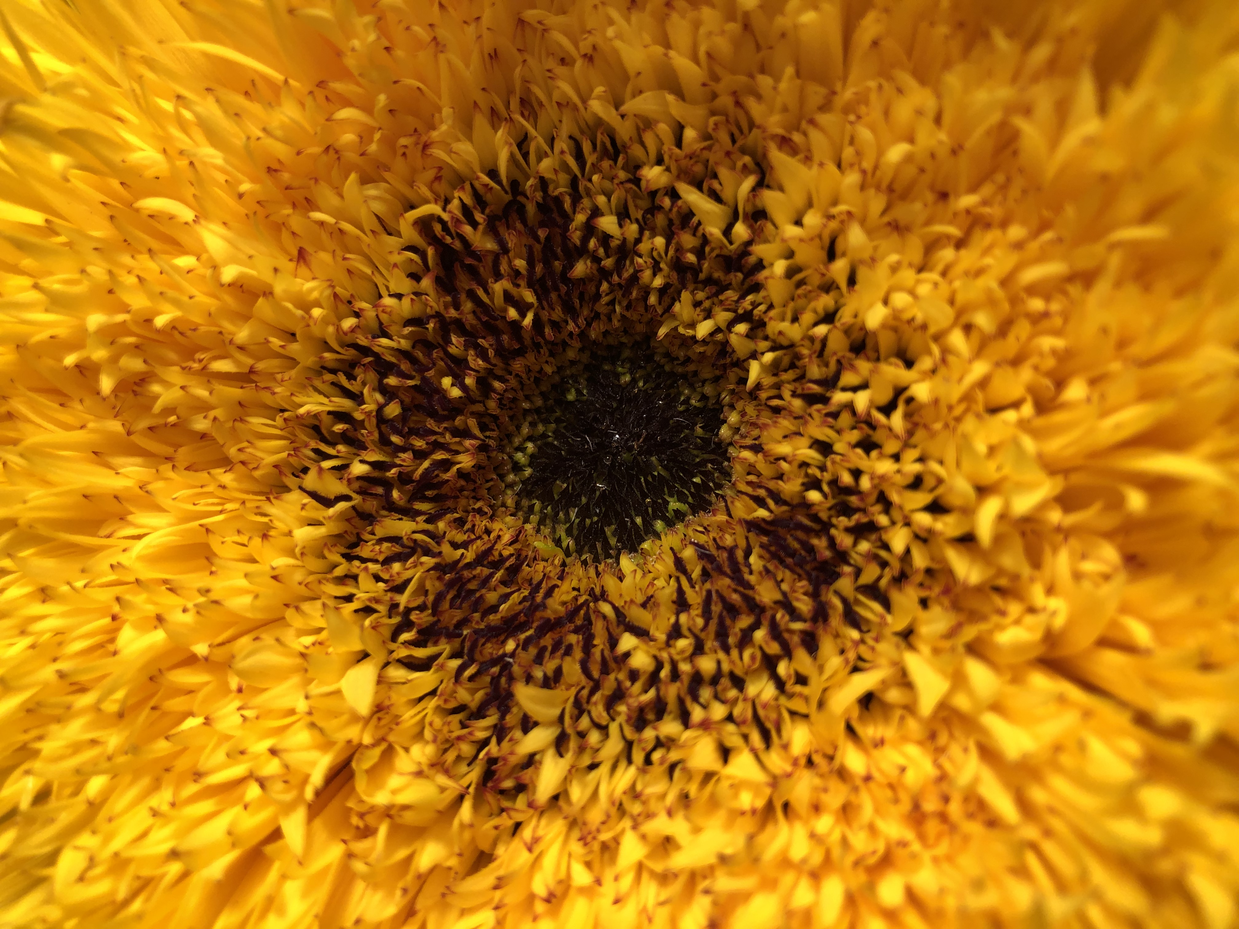 Because the fog is in today, I look into the eyes of sunflowers. At first, I’m entranced by their petals but then I focus in more closely and what do I see – infinity.
