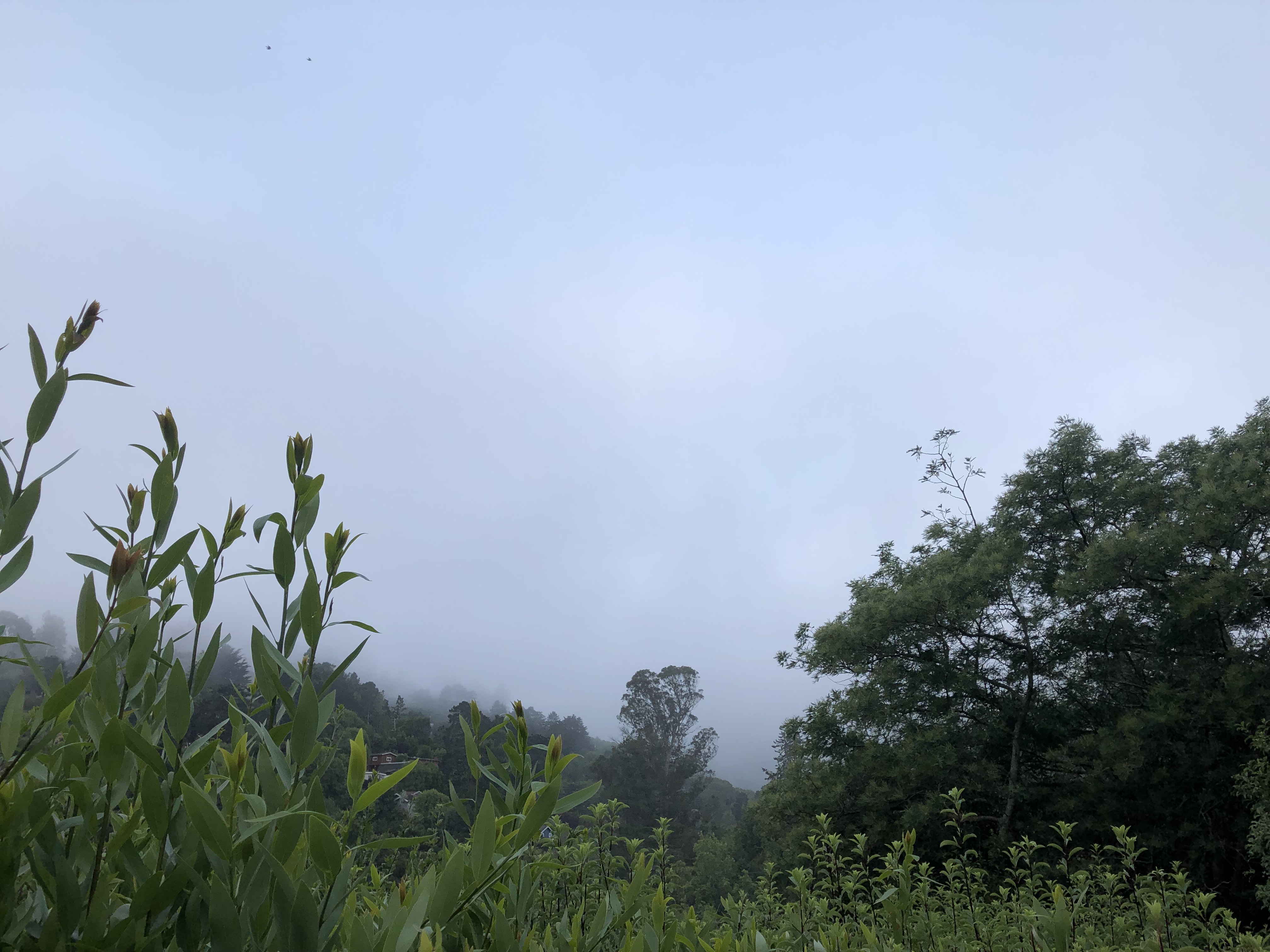 Silence rolls through my bones. Fog rests, and even as I type, it moves, and the ridge begins to reveal. I see another layer of trees.
