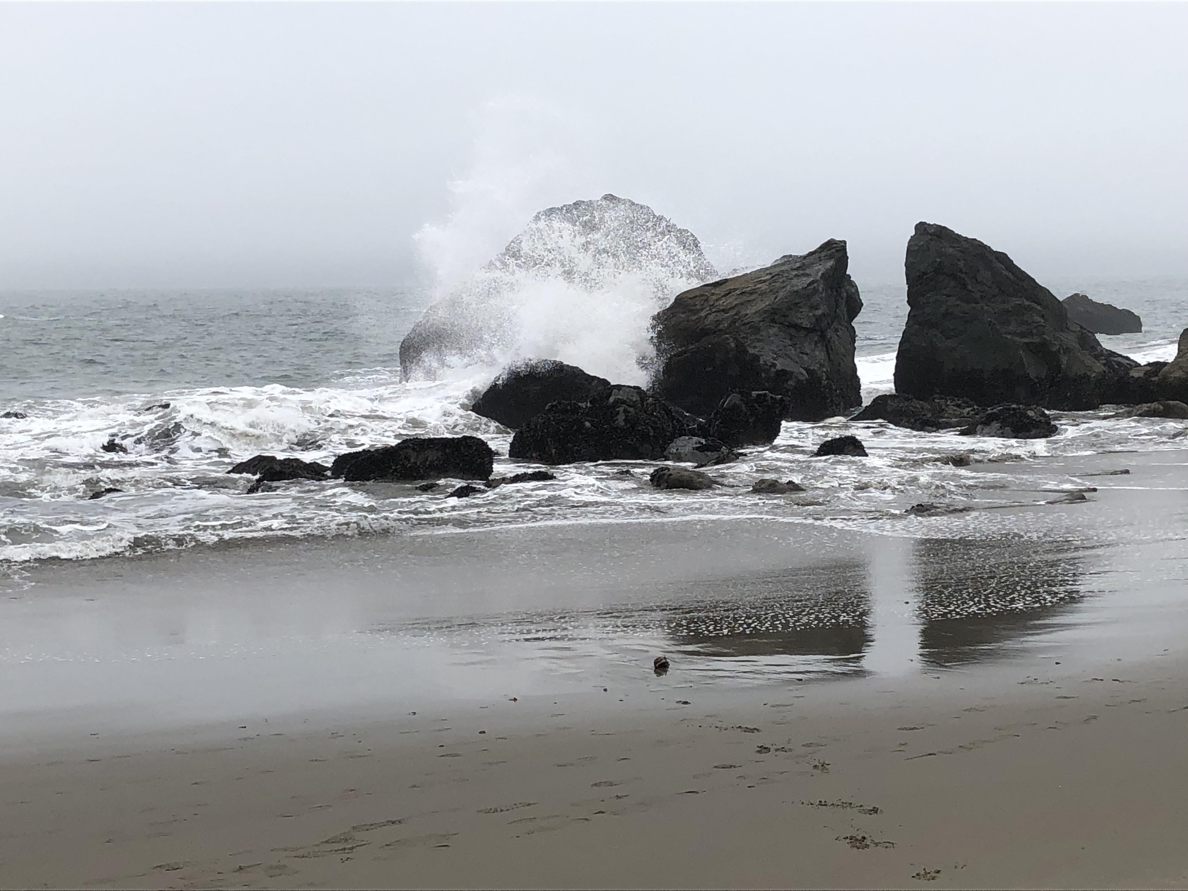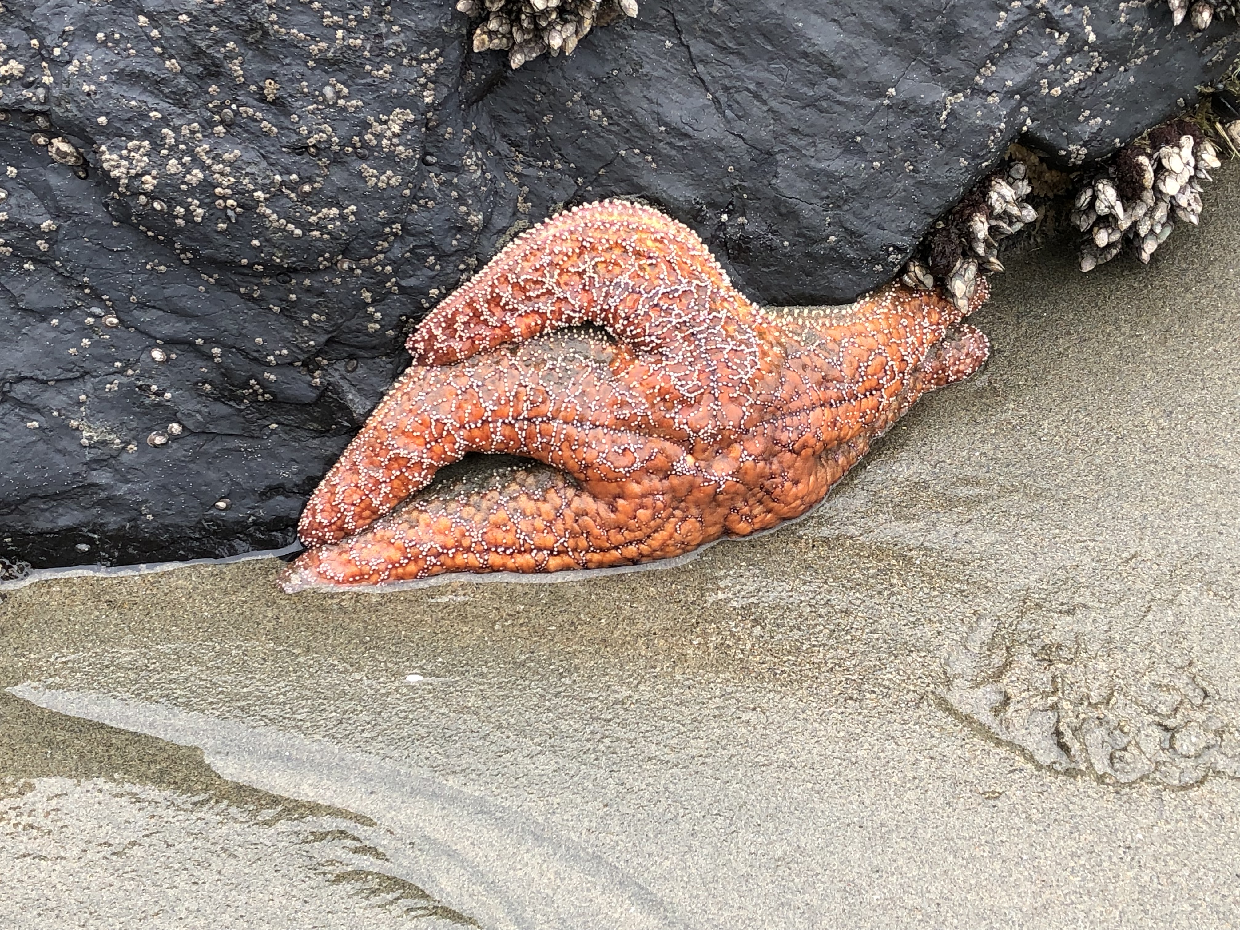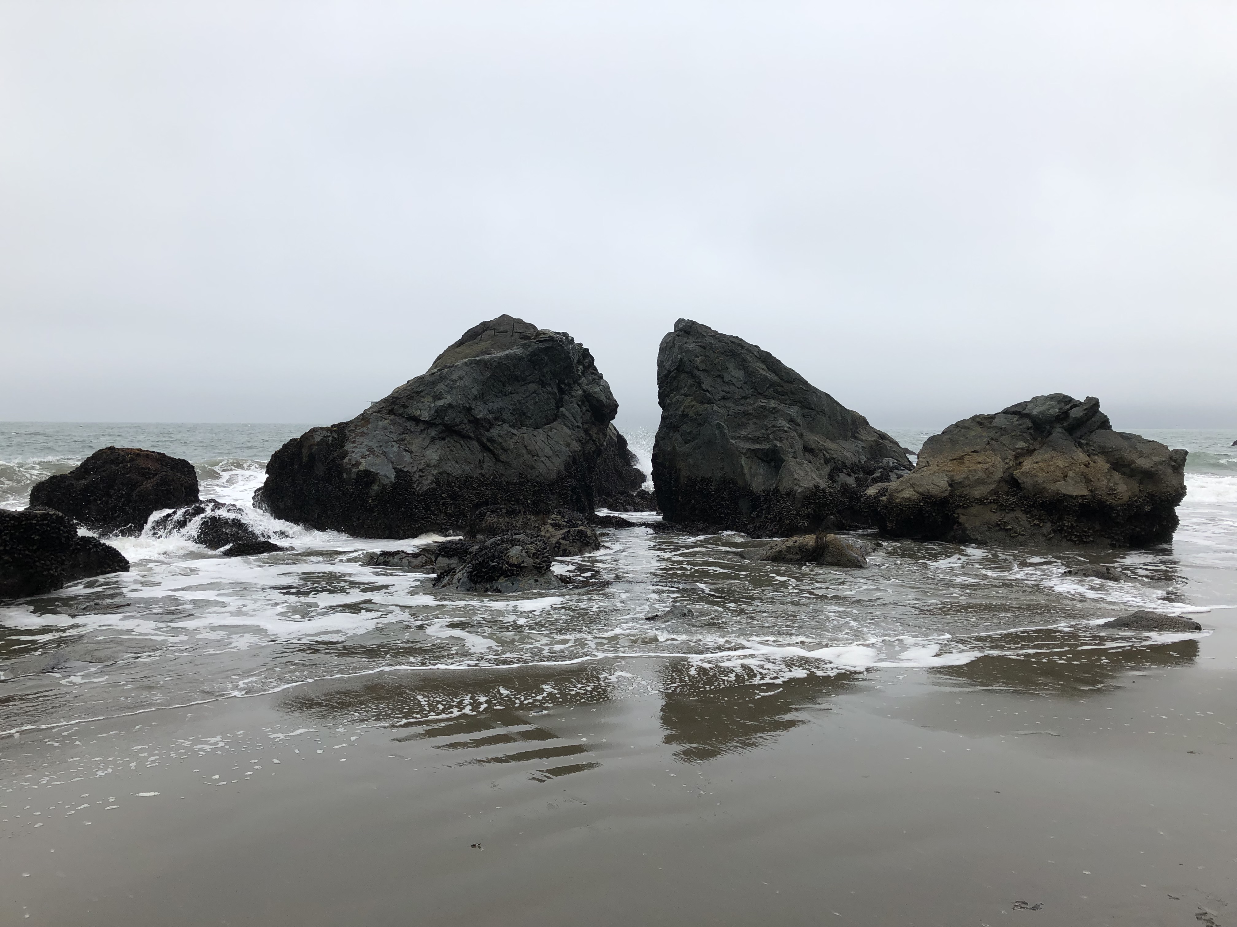 Yesterday, my intention was to spend time with Rodin’s sculptures at the Legion of Honor. Reading about how he worked spirit into clay had me inspired to again visit his work but then the fog around the Legion led me down steps, many steps, to the beach, and rocks that seem like animals held still and a low tide that revealed starfish, or sea stars, as they are otherwise known, and anemone waiting patiently for the return of the sea.
