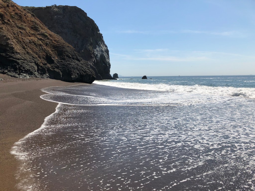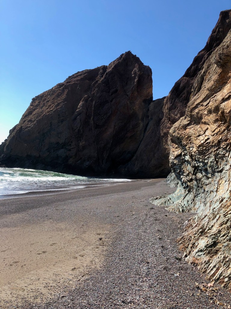 When we got to the ocean, we looked for shade, and found a little inlet, not a cave because it was open at the top but it allowed us to sit in the shade of the cliff. The rock held water that dripped down my back.
