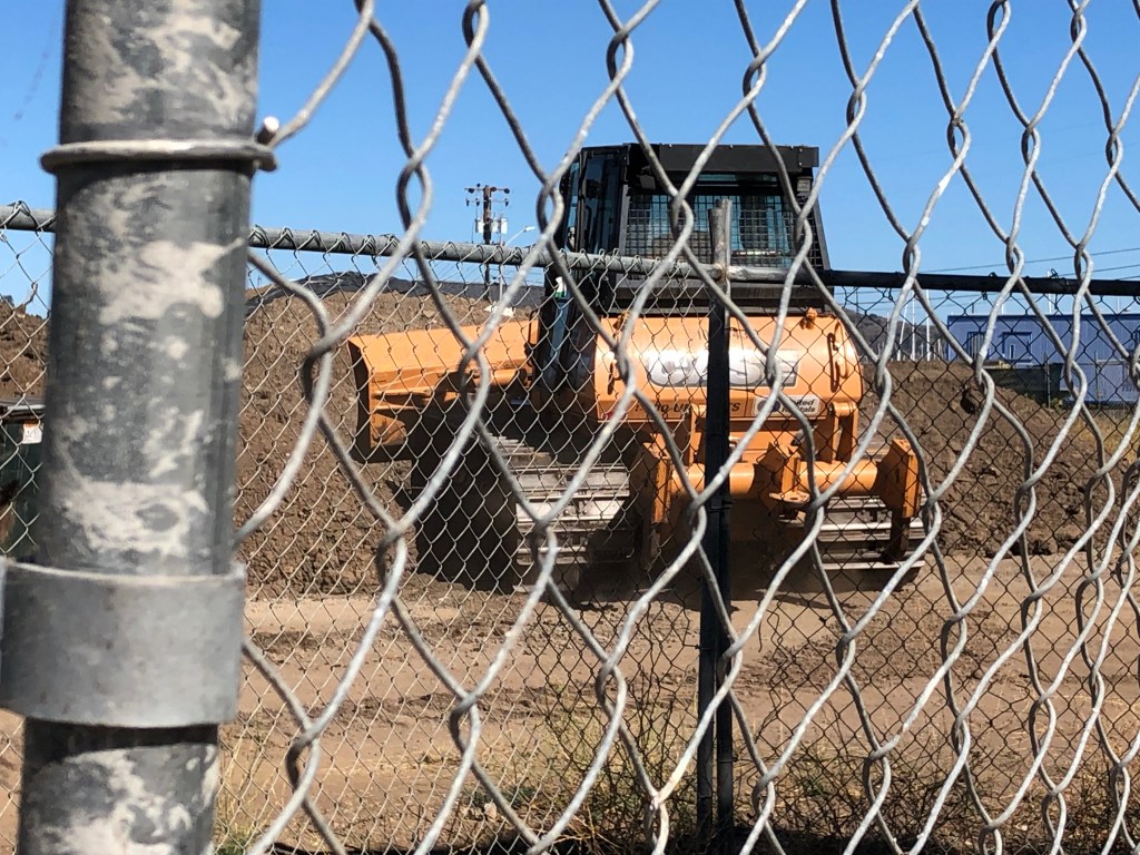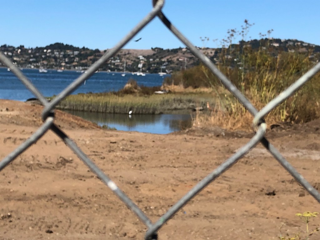 Today I watched this egret through a fence. He/she’s the white spot in the middle of the metal square. A bulldozer bulldozed nearby, very near, and yet, the egret was calm and content to continue its look for food.