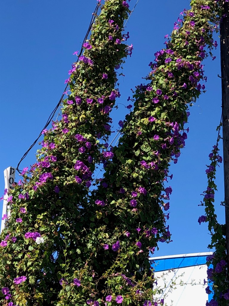 Then I saw this vine climbing up two poles. Nature is amazing. We are nature. Our democracy is threatened right now and we can ignore what distracts and keep climbing toward the nourishment of the sun, which when the skies aren’t polluted, we see. Clean air. Yum!