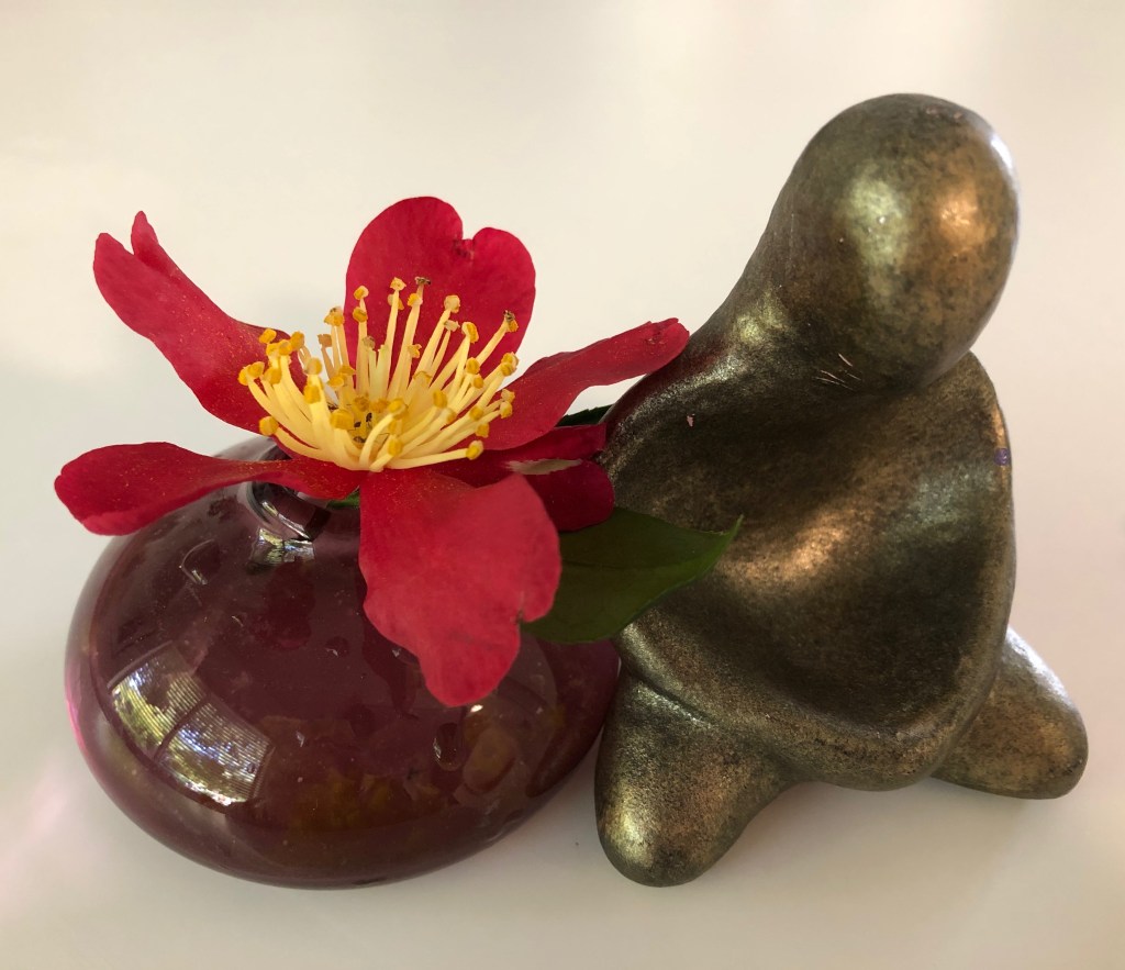 Now, today, fearing the threat of war, I look at an abstract goddess figure my brother gave me years ago. Her lap is a bowl where you place your wish for the day, week, month, and meditate on invitation, reception, and request.