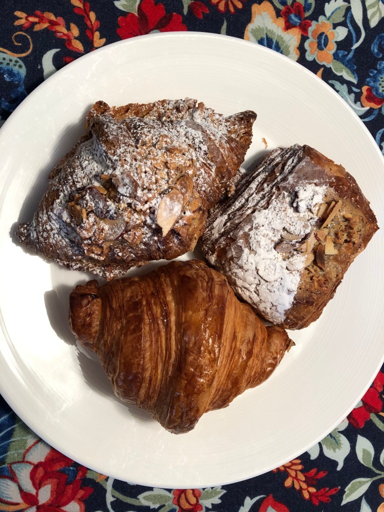 While sheltering-in-place, our neighbors have been giving us gifts of food. Keeping our current neighborly distance, they place goodies in a fabric bag hanging on the fence, and we endeavor to return equally, or somewhat, but I’m not sure we can equal the gift of today from Portside Bakery Pop Up in Sausalito. Yum!!