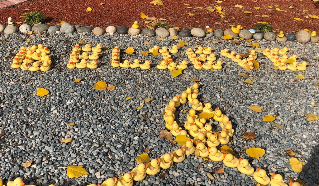 A neighbor of my grandson re-arranges hundreds of rubber duckies each day to deliver a message. Wednesday was “Believe”. This is only a portion of the display.