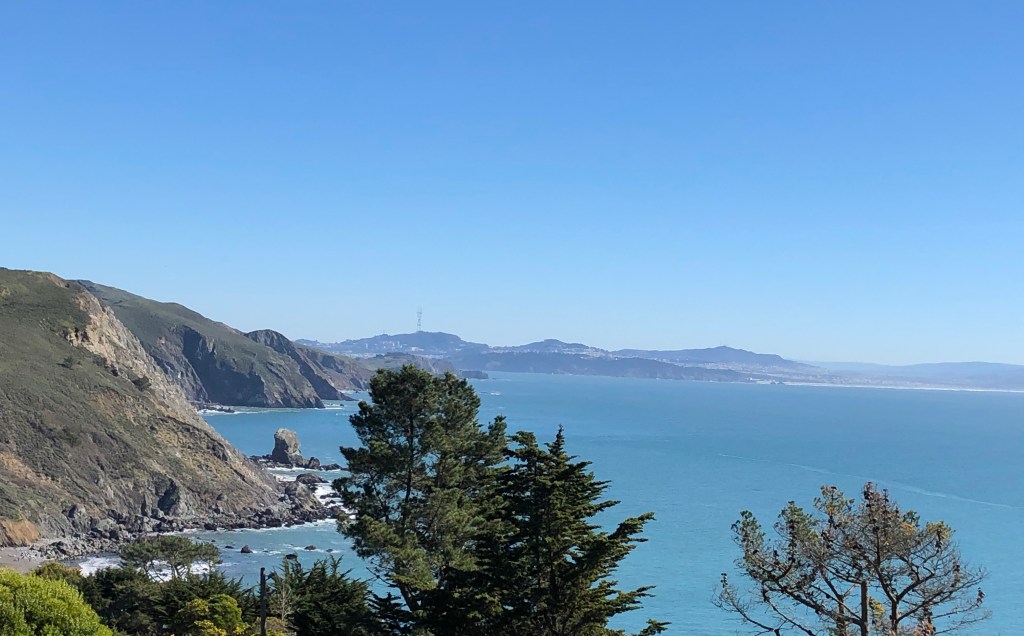 You can listen and then view pictures I took yesterday from the overlook in Muir Beach and further down. Music, Nature, Inspired!