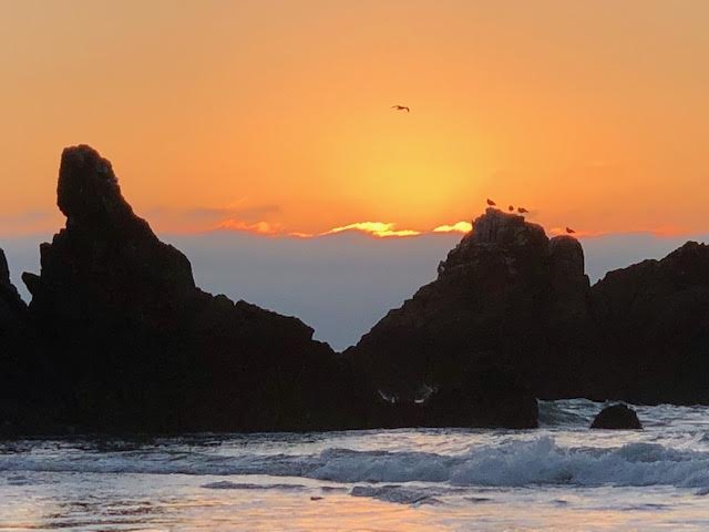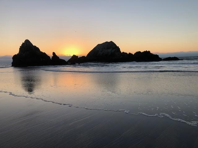 Elaine Chan-Scherer took photos of the sunset at Ocean Beach last night. We’re in the time of December King Tides, though Queen works, too, and the tides are extraordinarily high balanced with a shore-revealing low.