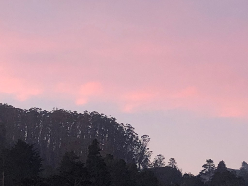The morning sky is aglow and one crow sits high in the redwood tree cawing appreciation. Perhaps I, too, caw in awe.