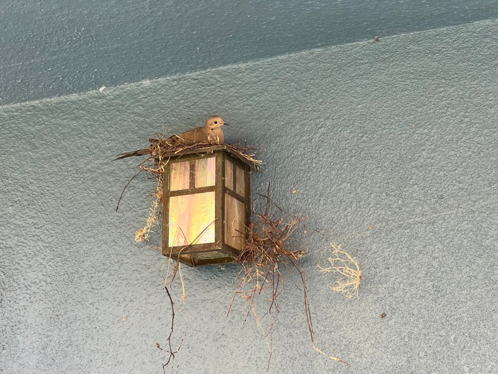 I woke up this morning shimmering like a tuning fork, grateful for each breath, the in and out, lungs so beautiful in their handling of and care for air. Our little bird friend is still resting on her nest, and yesterday I was at a friend’s house where a mourning dove nests like our little wren. Meanwhile flowers are everywhere.