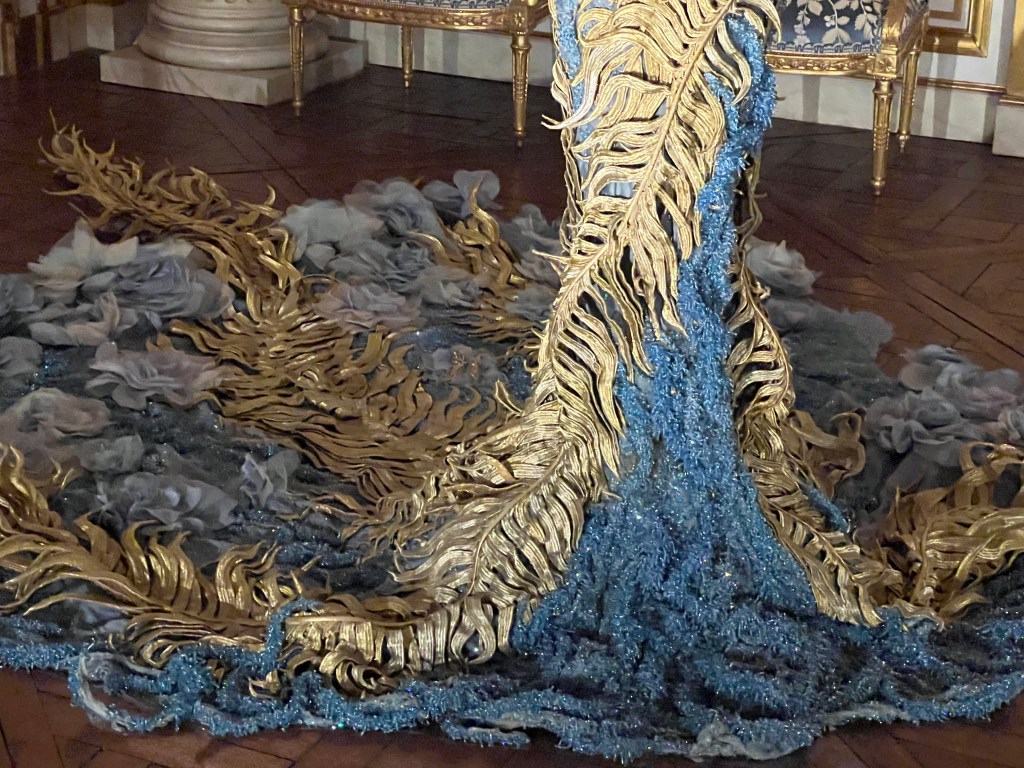 Yesterday I was at the Legion of honor for the Guo Pei exhibit, a “Couture Fantasy” and a fantasy it was. Guo Pei was raised during the Cultural Revolution in China when everyone wore the same outfit in gray or brown. There was no display of creativity or uniqueness. She listened to stories from her grandmother of beautiful clothes and jewelry. From that her imagination grew and flowed and she says “Working to create something is like a religion to me.”