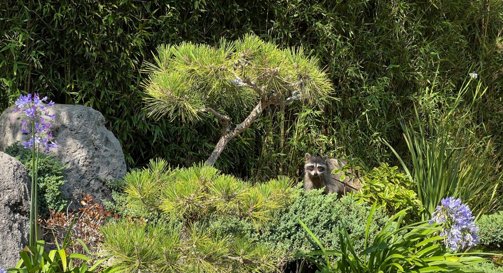 We have ⅓ of an acre, most of which we keep natural for our fellow creatures. A part is fenced though to contain and protect a Japanese garden. Yesterday afternoon we noted movement over the fence, and here is our new friend.