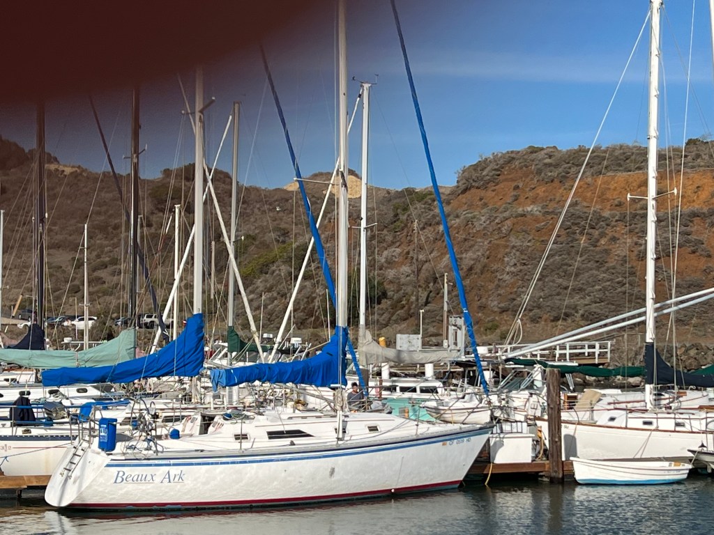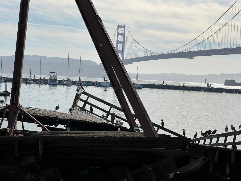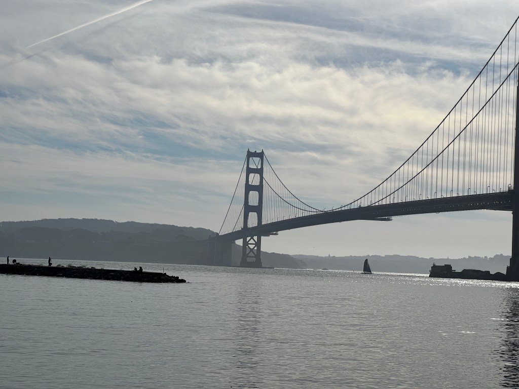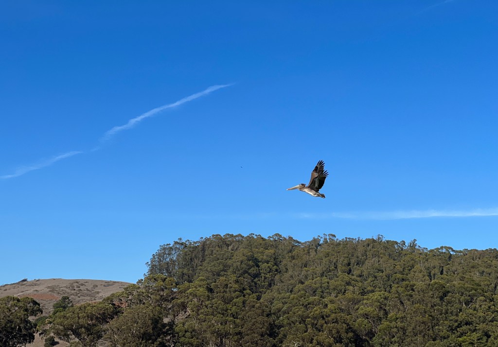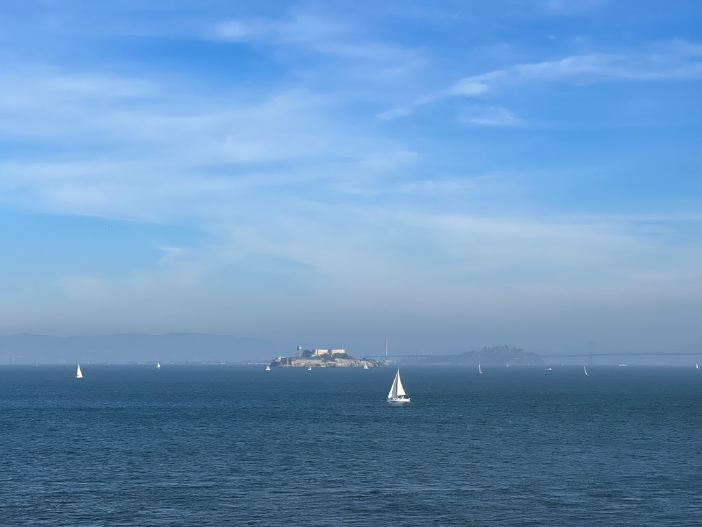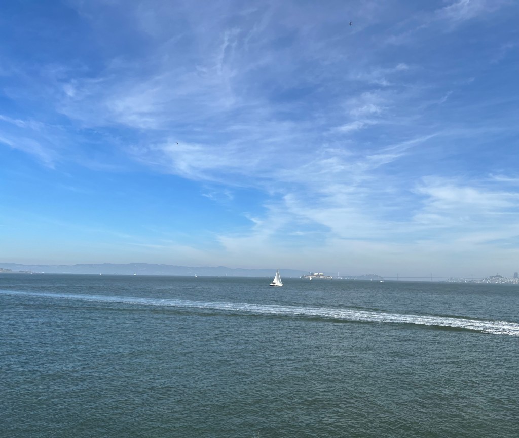 The tide flows into the marshBee enjoying feeding in the sunshineSunday from Cavallo Point Another viewA Pelican AloftThe bay and clouds gather in graceAlcatraz and all that surrounds Boats at rest