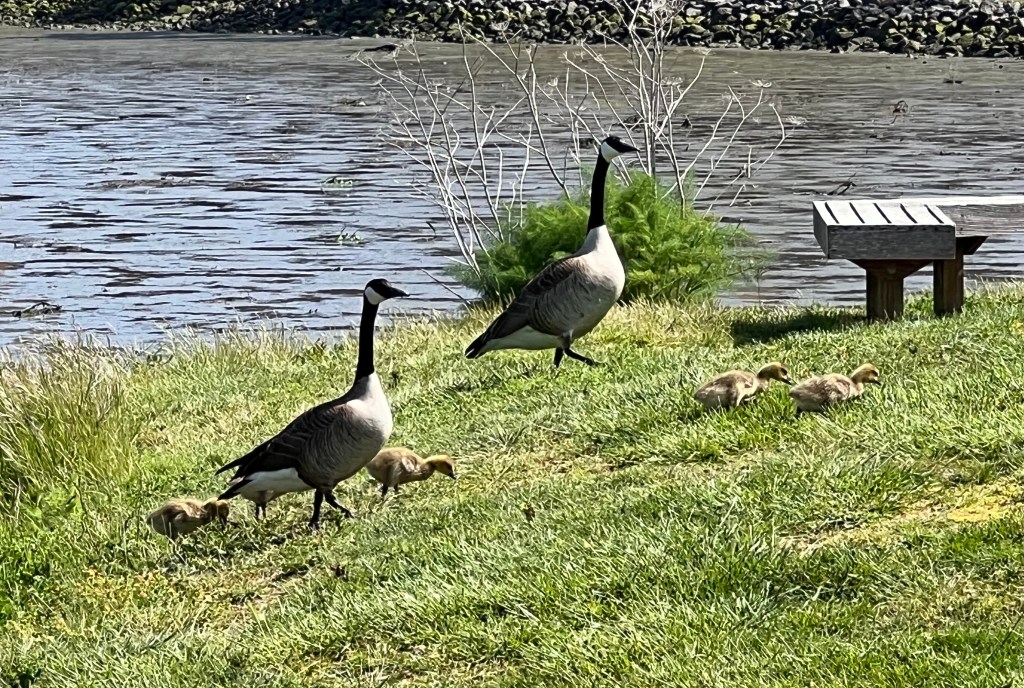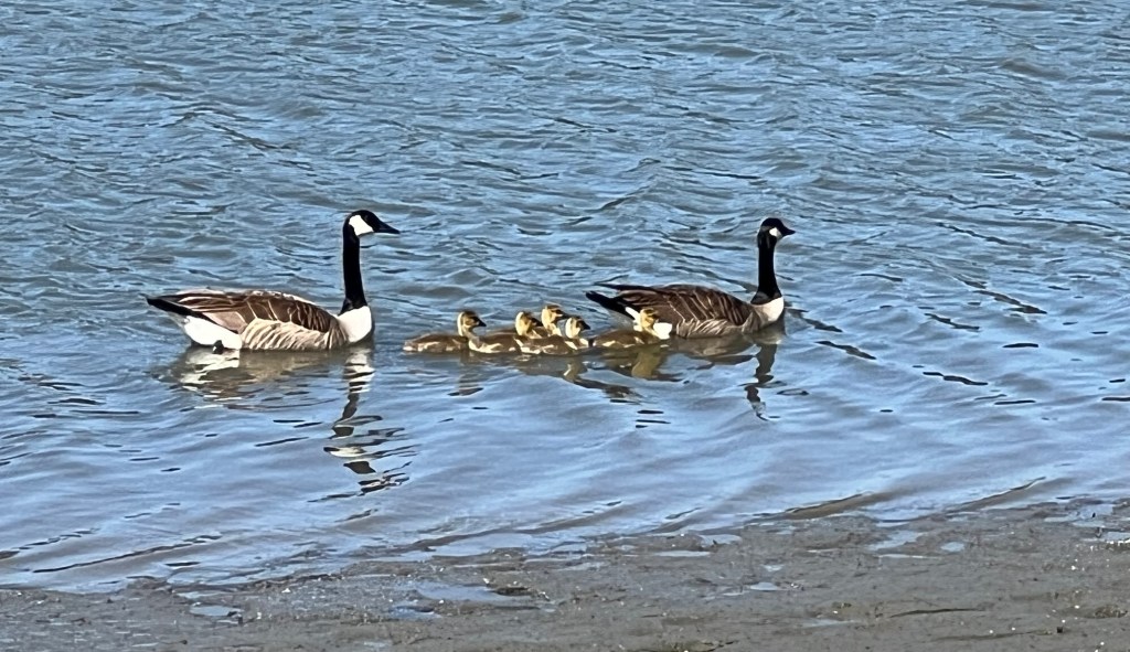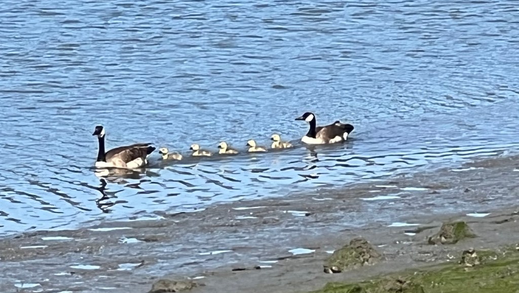 A family of geese Five babies growing up protected Flowing in a row One way and another Lunchtime Beauty Grace Look up to Wisteria Share this: Click to share on X (Opens in new window) X Click to share on Facebook (Opens in new window) Facebook Like Loading... Related