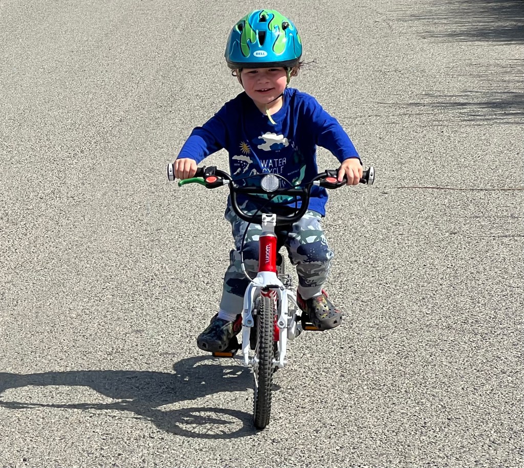 Cydney, Yes, I meant it both ways which you “got”. He definitely didn’t make it up the hill but will soon. It’s good to have gears on your bike and be able to stand up to climb and it’s definitely entertaining watching him learn. 🙂 Quite the treat!