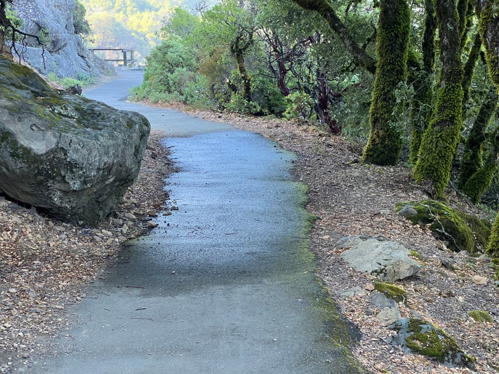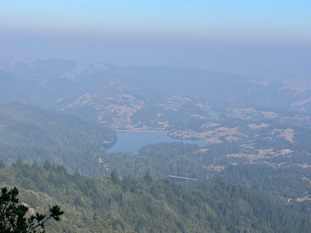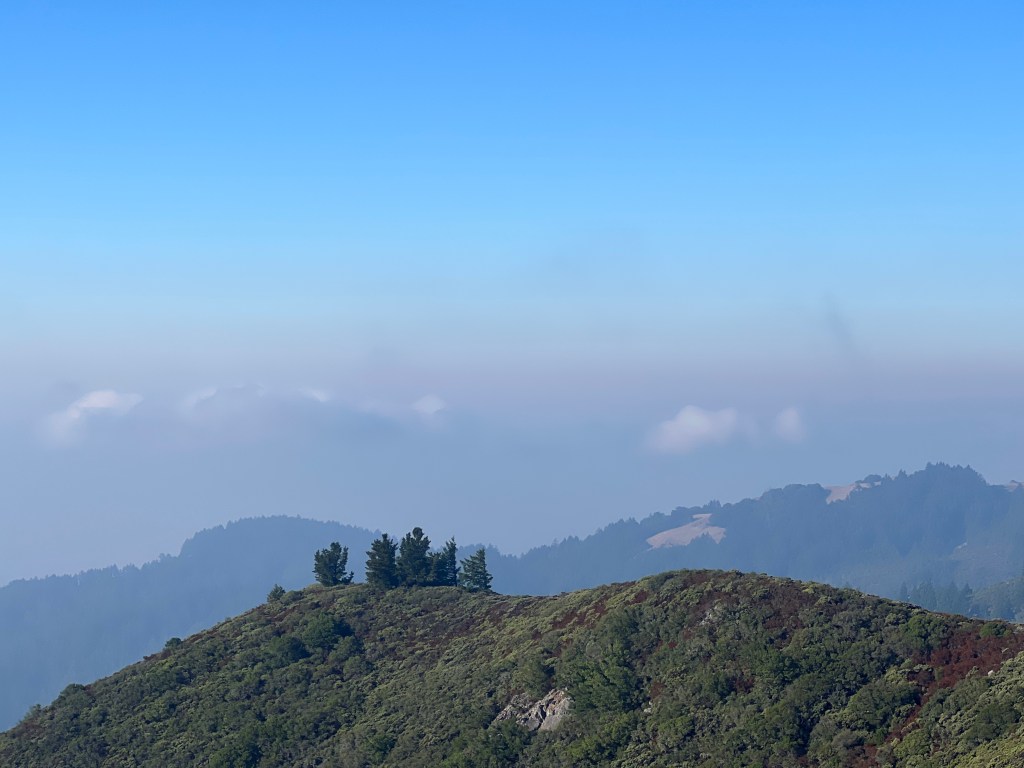 This morning I decided to drive to the top of Mt. Tam and walk around the circle at the top. When I got out of the car, the smell of the mountain plants in fall was beautifully overwhelming and filling. As I stepped onto the trail, I smelled the smoke from fires to the north. No view of San Francisco or the ocean today!