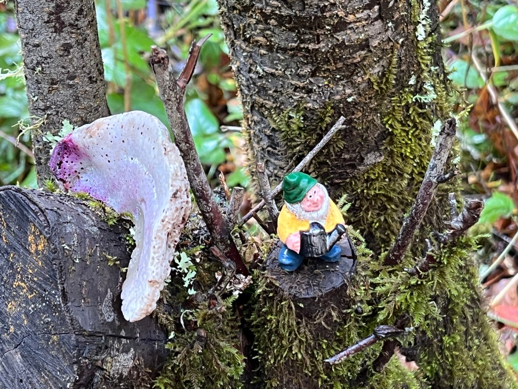 Yesterday my neighbor and I took a walk on the Oakwood Valley Trail to immerse in the fairy landscape there. Water was still dripping from the morning rain, and it was a land of enchantment.