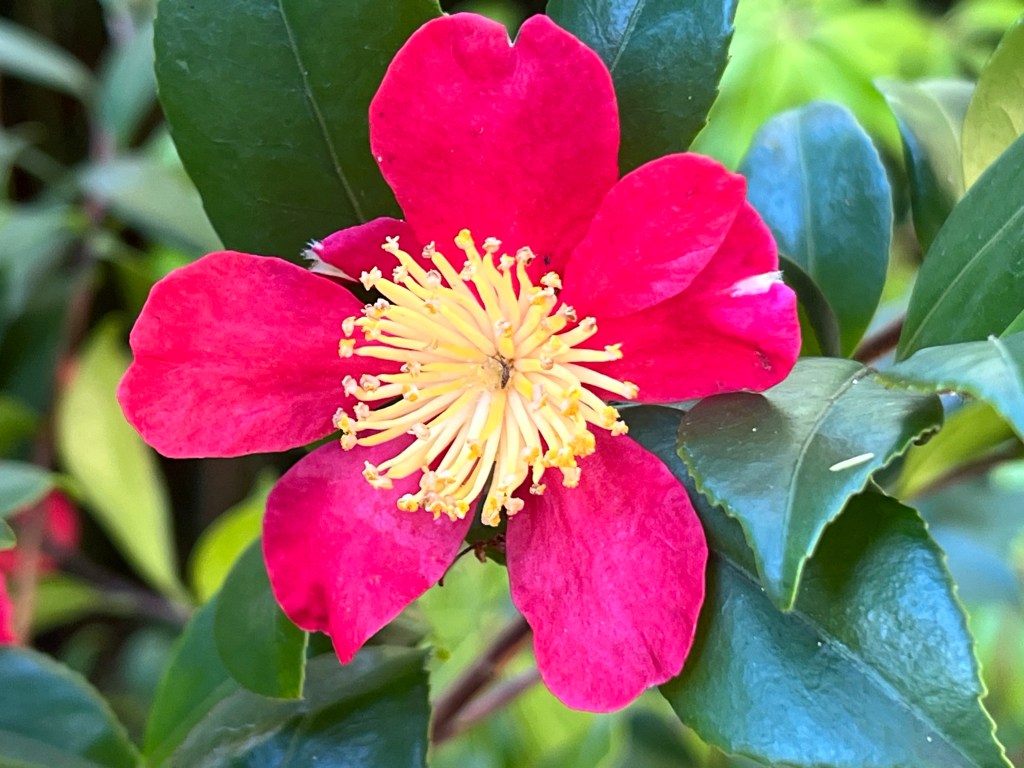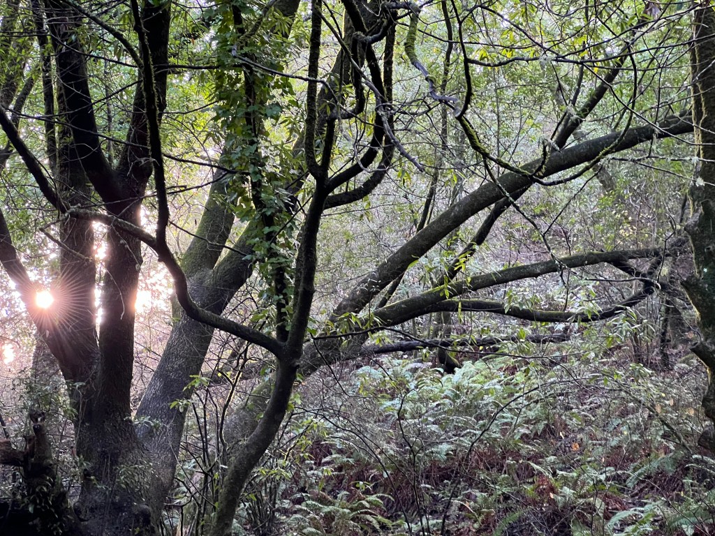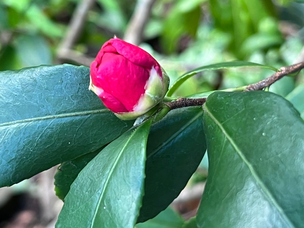 Yesterday I walked along the fairy trail. It was raining an hour before, and then the sun came out though I was sheltered in an Oakwood Valley of ferns, trees, and streams. It felt magical and now I peruse the photos and see images in the water, trees, moss, and lichen to explore. When I returned home I saw the camellia bush offering buds and blooms.