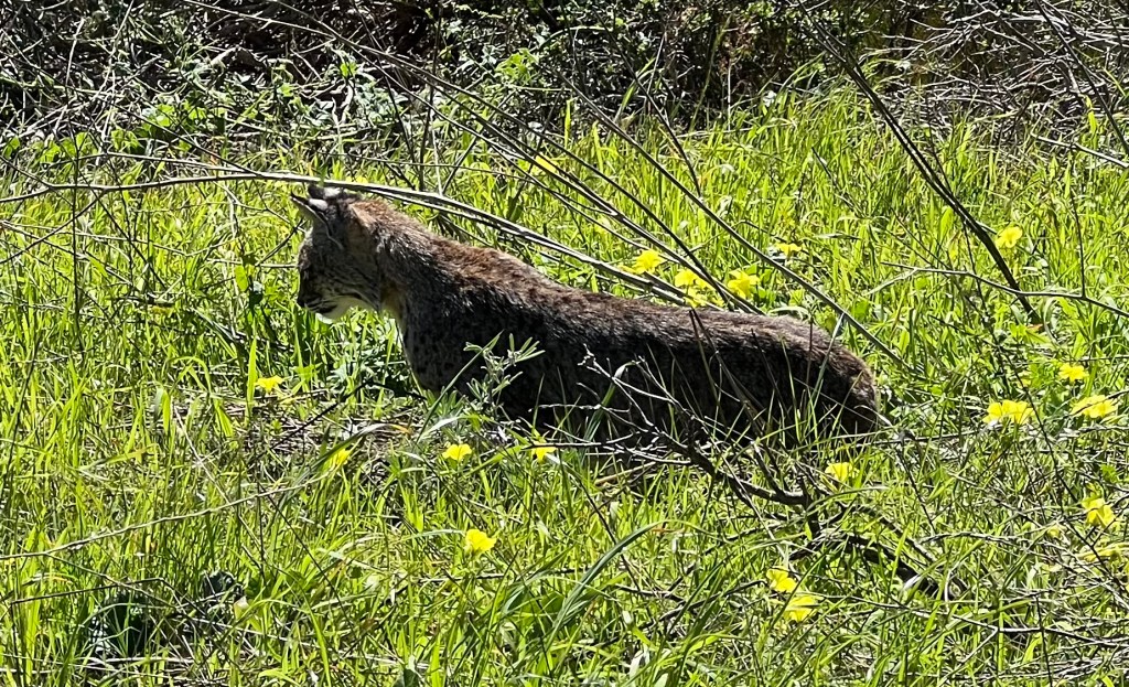 On Friday, I walked Tennessee Valley with a friend. We saw a bobcat on our way to the beach, and a Great Blue Heron on the way back. The bobcat reminded me of my cat Tiger, just as friendly and playful. We watched the bobcat hop for and trap lunch, and the heron catch a fish.