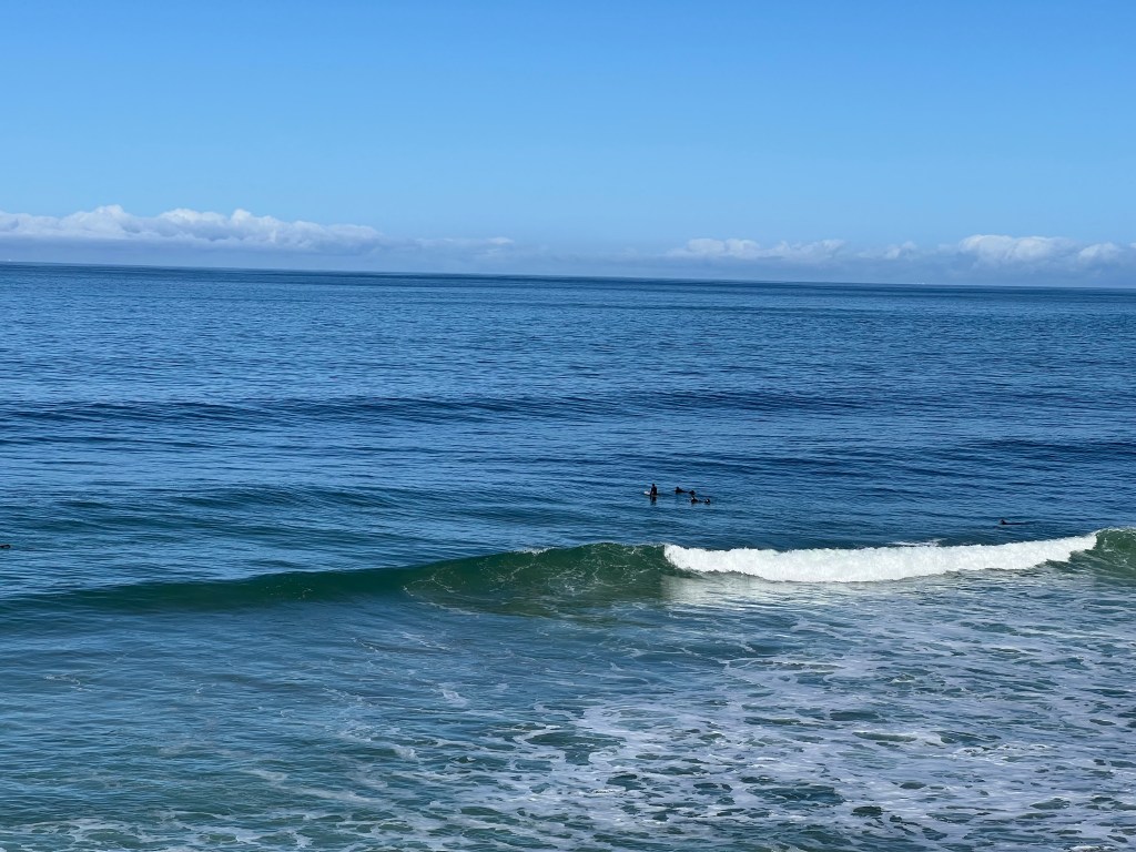 We live, immersed, held. I’m listening to meditations with Sam Harris. He suggests we have no free will. There is trust in entering the ocean of waves knowing suspension and whirling as air flows in and out.