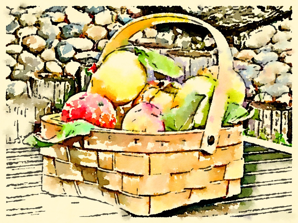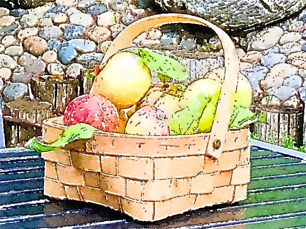 I sent a photo of the apples in the basket to the neighbor who gave them to me. She used a watercolor app to send it back. Wow!