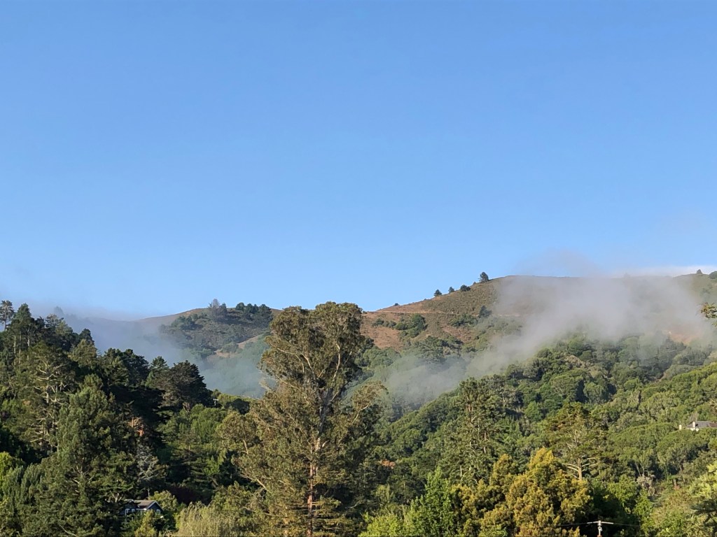 The day is currently clear and the fog wafts back and forth like a flag saying all is okay. The birds are tweeting to greet the day.