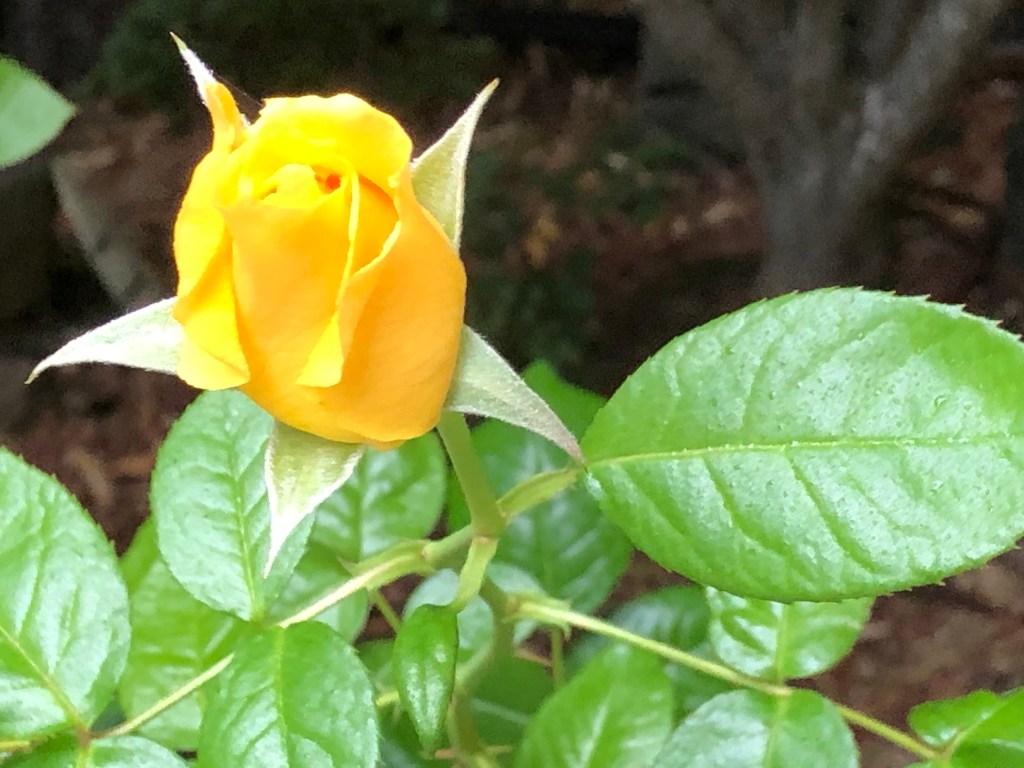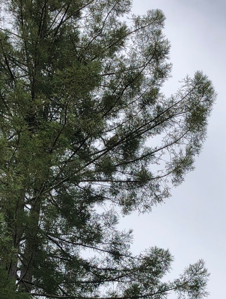 I went outside early this morning hoping to see the fawn, still dappled, that Steve saw yesterday. I sat with the Redwood tree, listening to tweeting but I didn’t hear the fawn which sounds like a small goat bleating.