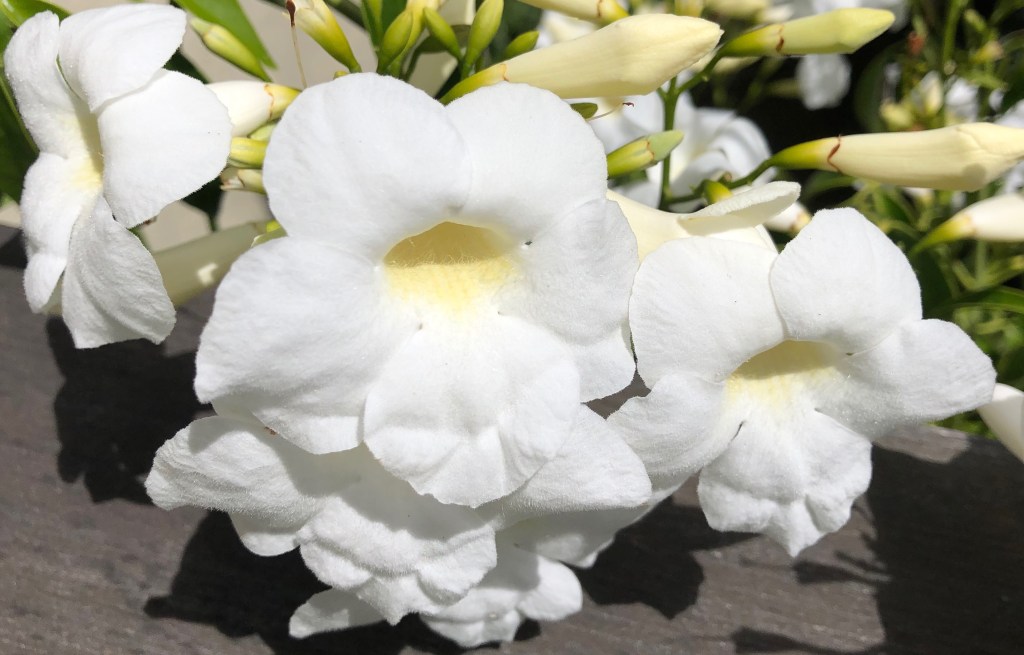 I heard the call of the hawk so went outside hoping for a picture. I could hear him and even see him at times, but mainly captured clouds and trees, but then, a jasmine flower came to flight. It was a butterfly.