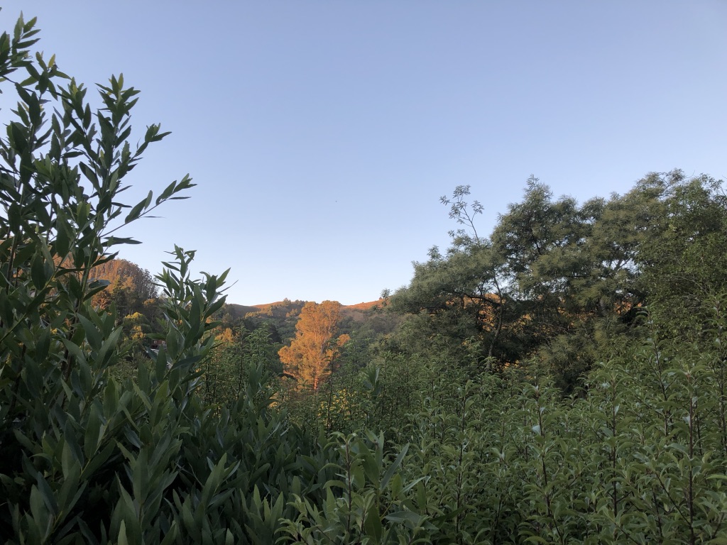 I comfort myself with the words of Thoreau. “It’s not what you look at that matters, it’s what you see.” What I see, in this moment, is sunlight spreading gold over a landscape so still it could be a photo.