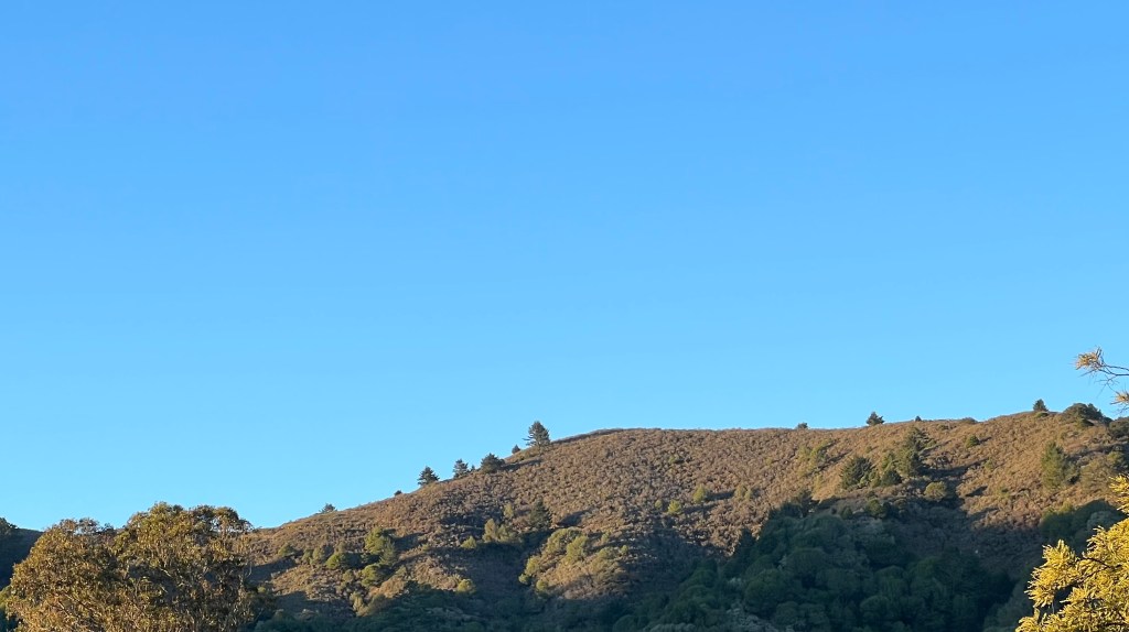 Morning today – the hills in reception of a coming return to green