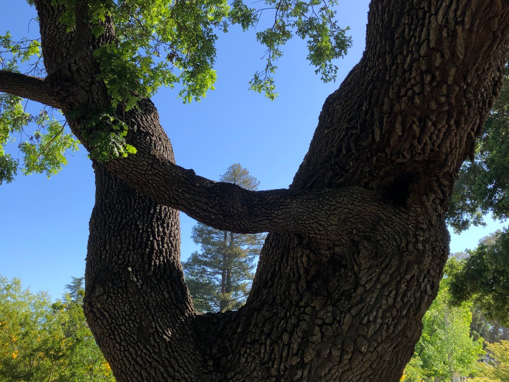 Grandson is pure delight and we spent time running around, hugging, and looking up through trees. One redwood hung down enough we could bounce the branches up and down fanning ourselves and the tree.