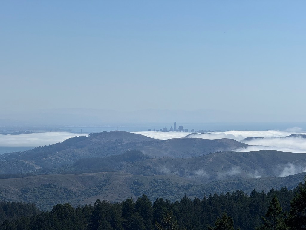 In one tricky spot, I met three young people enjoying a snack. As I debated how to traverse the roots, one of the men offered two hands to help me down. I was reminded of years ago when on a hot day I’d walked from Pantoll down to Stinson Beach where, fully clothed, I walked straight into the Pacific Ocean and swam. When I emerged, a young boy stood there offering me a towel. Helpers abound.