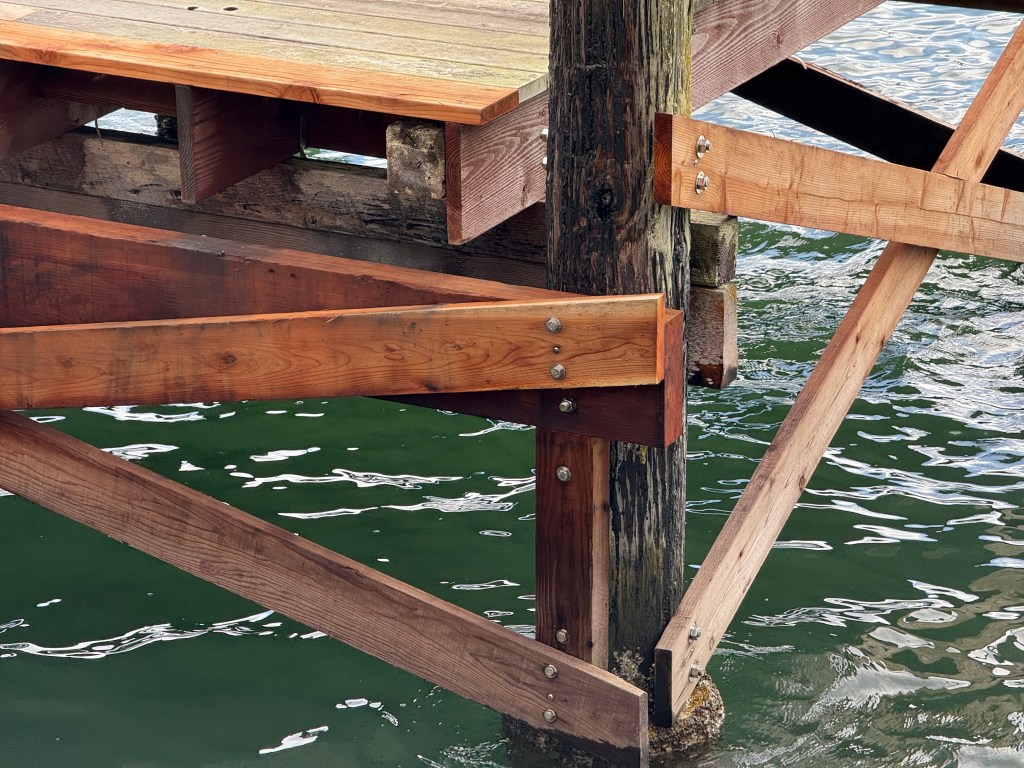 Repair combines the old and the newIntricacy in BracingHandrails in Support Looking down into the water – Art!