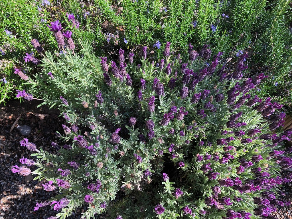 Friends say they’re having trouble sleeping.  That’s never been a problem for me, but in these times of stress, I have an evening ritual. I tuck into bed, which is now the couch since Steve has our bedroom, and I imagine those I love who have passed away, and I picture them scattering petals like feathers over me as I go to sleep. Usually it’s roses, but these days, it may be the flowers I see during the day, so pink jasmine, lavender, and rosemary.