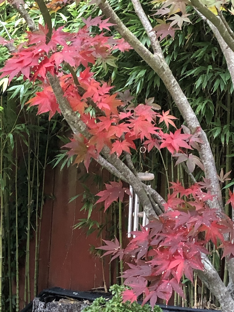 I choose a Maple tree, well, two, actually three. I know they connect through their roots and processing of breath and air. I’ve been watching them carefully, as their leaves are changing rapidly, as the sun moves through the day, and some are beginning to darken, crinkle and fall.