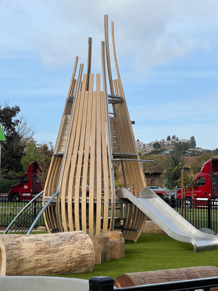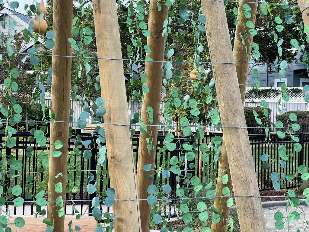Then, Grandchild noticed there were six rounds of wood placed next to the stump, and they weren’t there yesterday. Some older children came by, and they, too, were intrigued by the six new circles of wood. Why were they there and who put them there? The conclusion was that they were for taller children who didn’t need to climb up on a stump to catch the end of the rope, or that maybe they were meant to be run along before catching the rope.