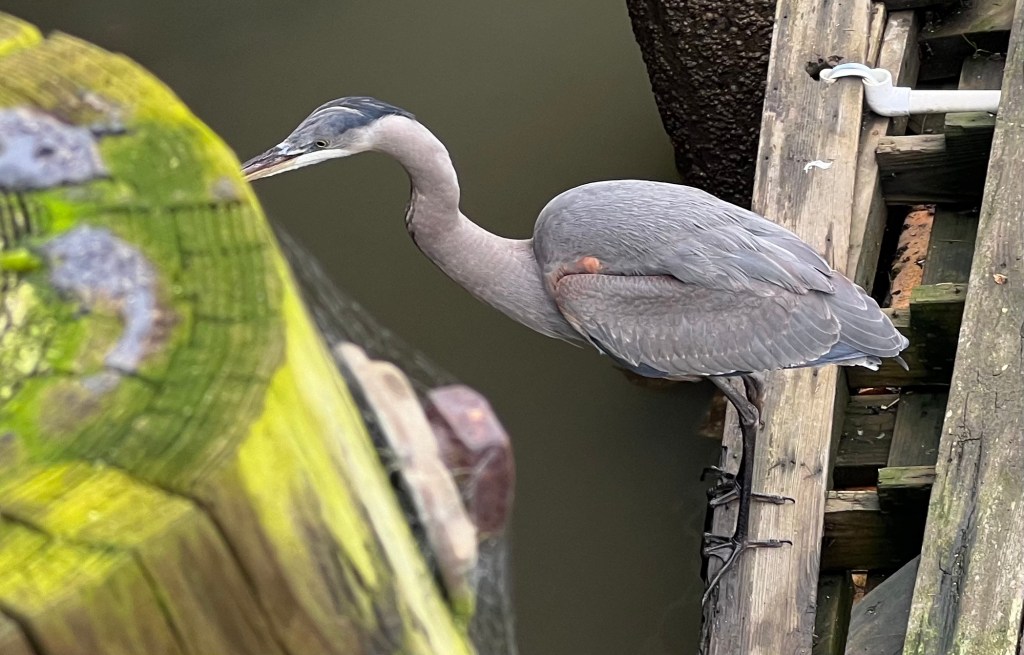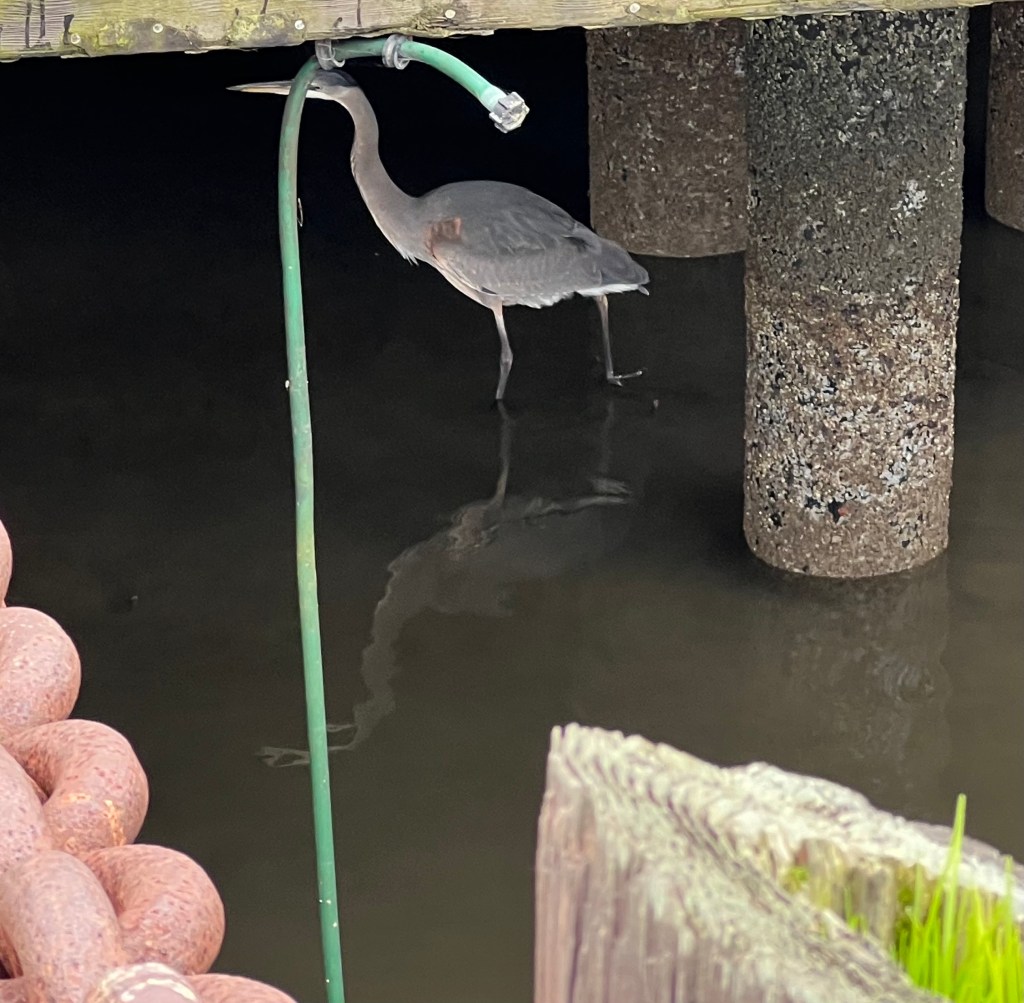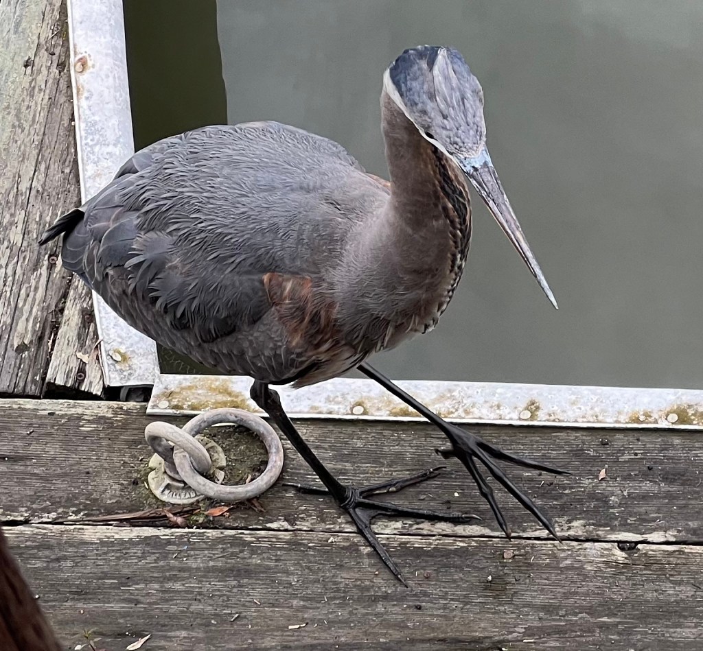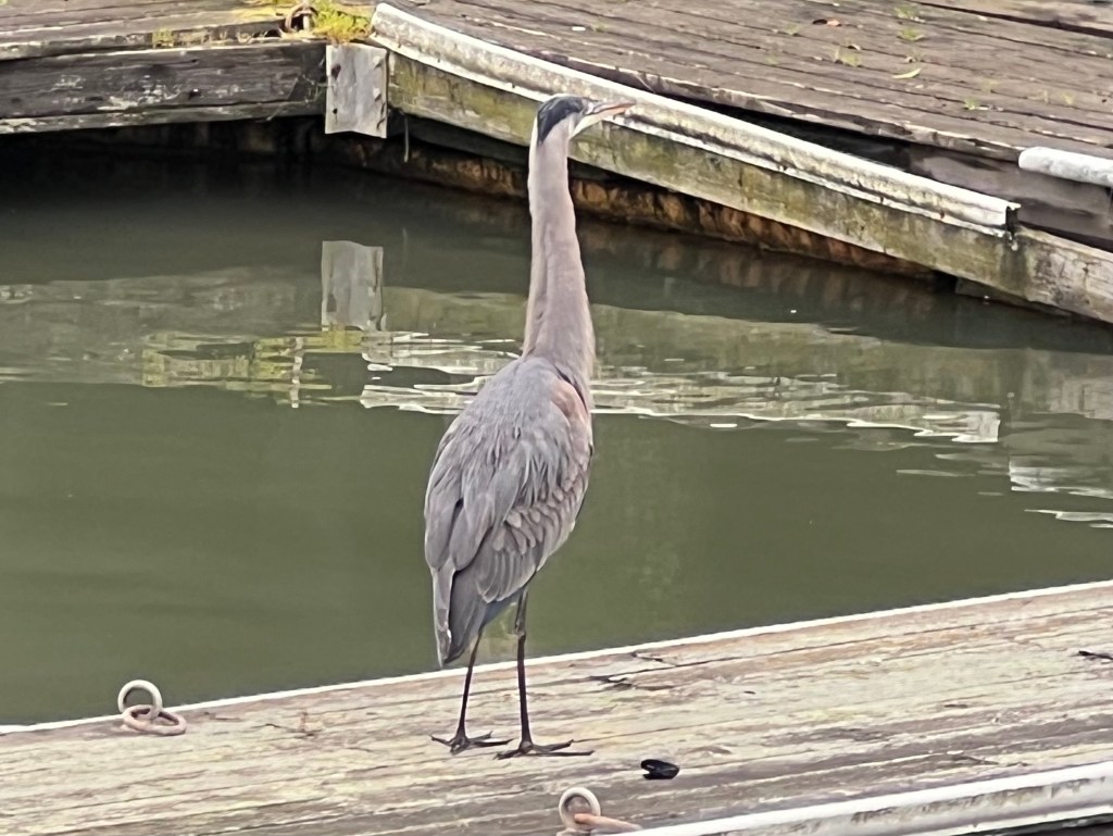 Today I felt drawn to return to the place where, yesterday, I saw the Great Blue Heron. I felt she was the one I bonded with last February when I stayed on a houseboat in Sausalito. I met a woman who also feels bonded to this bird, and said yes, the bird is here at low tide, and in the place I met her last year at high tide. The woman said, “I love her”, and I said , “As do I”. I share more photos oflife in the bay.