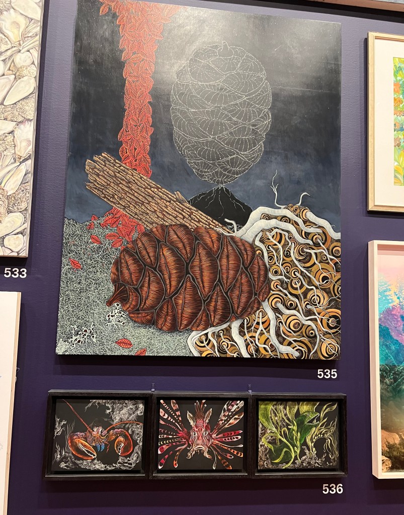 I offer images to stimulate body and mind, inside and out. I’m not giving the titles chosen by the artists, just allowing you to open and see what comes. The following images begin and end with the natural landscape, a moving, evolving form of art.