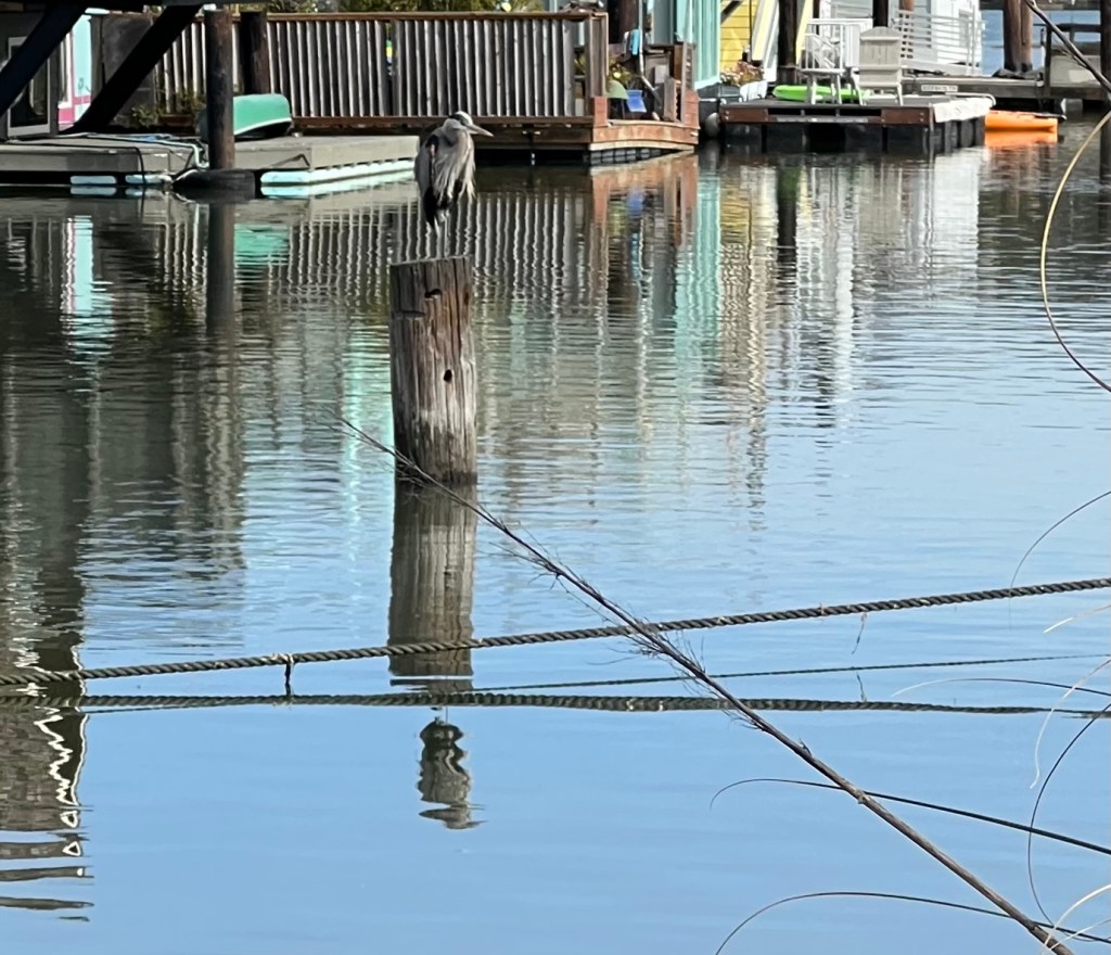 Yesterday I was enjoying taking pictures of egrets when a man showed me a most wonderful Great Blue Heron standing statuesque behind some fronds. Such a gift!