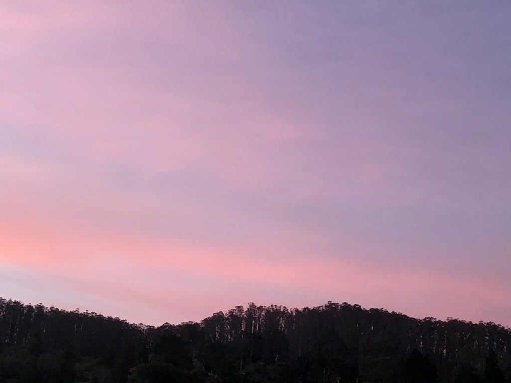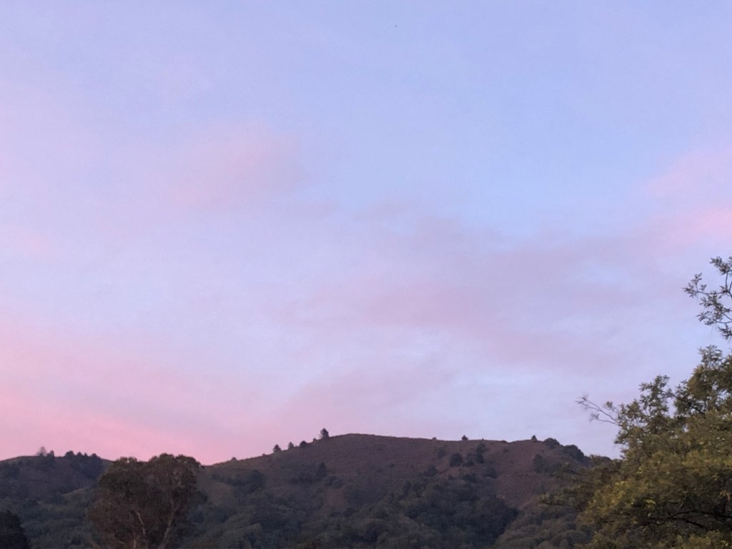 Last night, a warm night, I sat outside to watch the changing light. Birds were twittering away until a parting flash of gold and the crickets began their song. I’m with these words.