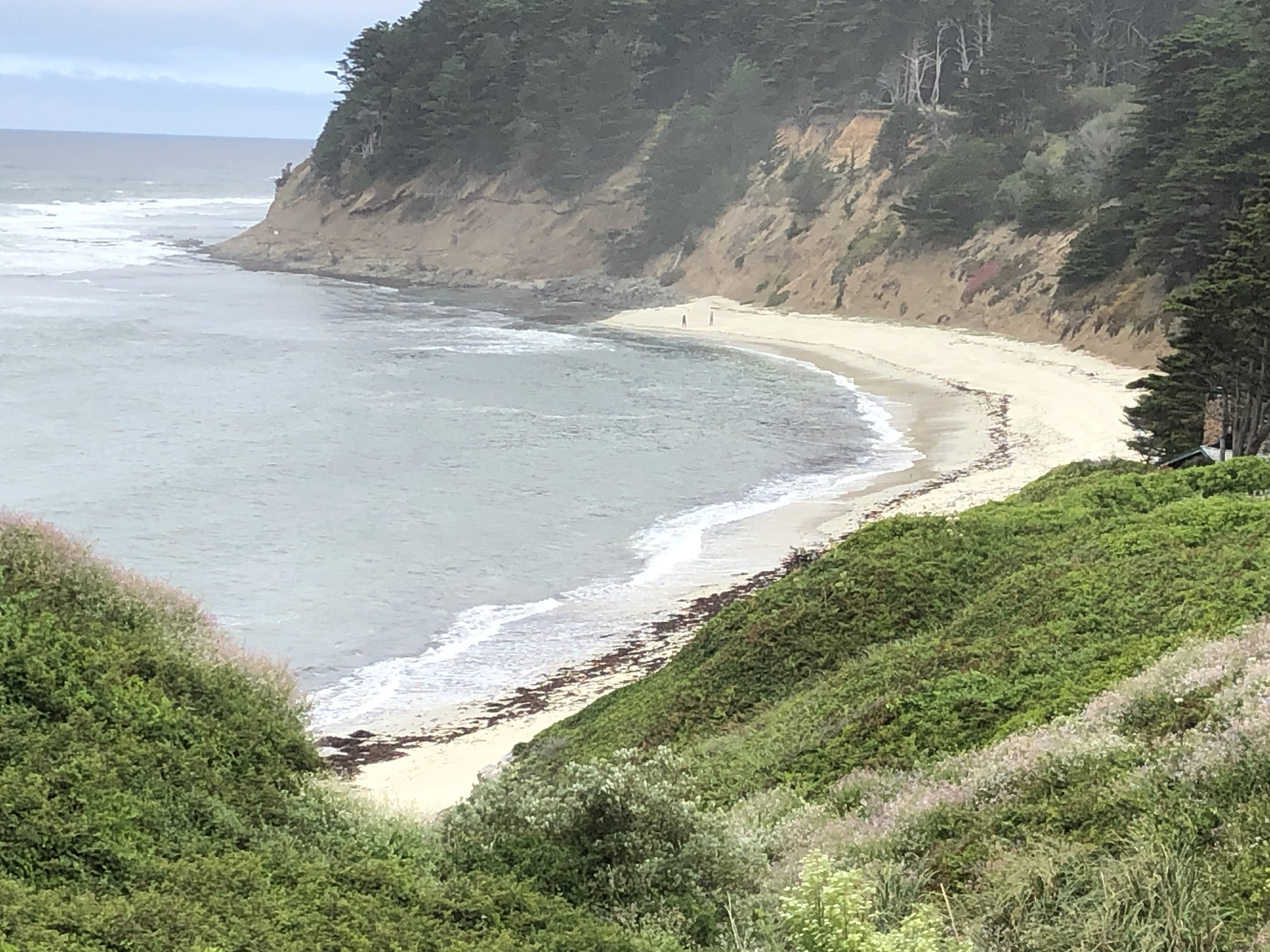 I slept like a log which may have had a great deal to do with traipsing to different beaches yesterday, getting a sense of which one would be the place my brother would best like his ashes to float to sea. I learned the high tide at Maverick’s is at 3:30 PM on Friday, the solstice, the longest day of the year. We will gather, and as the tide goes out, wade out into the water, and set or toss the ashes into the outgoing waves as though they are seals and otters released back into the wild.