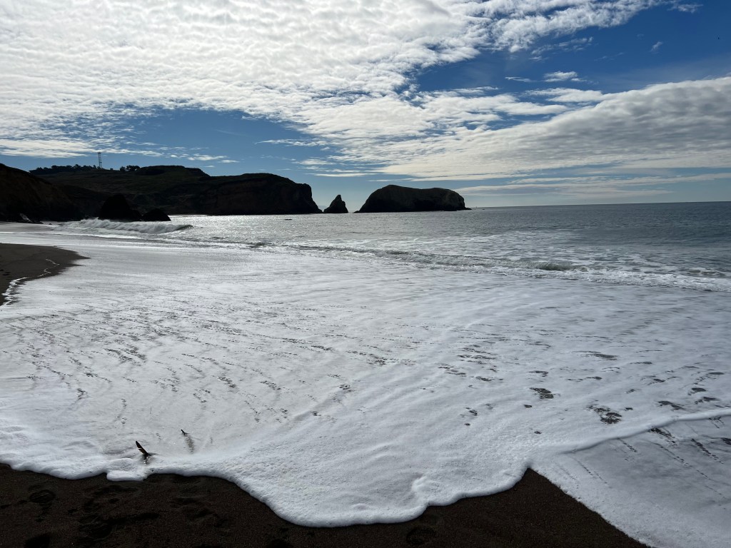 I was at Cavallo Point today looking up at the Golden Gate Bridge, and came across a sign explaining that “a Physical Suicide Deterrent System is being installed along the west and east sides of the Bridge. The potentially life-saving system will rely on horizontal stainless steel nets supported by steel struts connected to the Golden Gate Bridge structure. The net will lie approximately 20 feet below the sidewalk and will extend horizontally approximately 20 feet from the Bridge. The South Approach Viaduct, Fort Point Arch, Suspension Bridge and the North Approach Viaduct will be fitted with this protective barrier. Further protection is being provided by a 12-foot-high picket fence installed atop the concrete bridge railing at the north end of the bridge.”