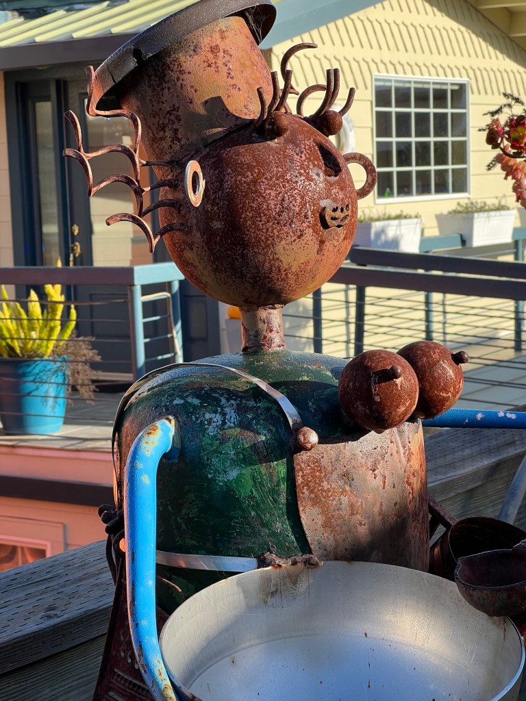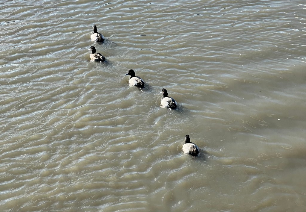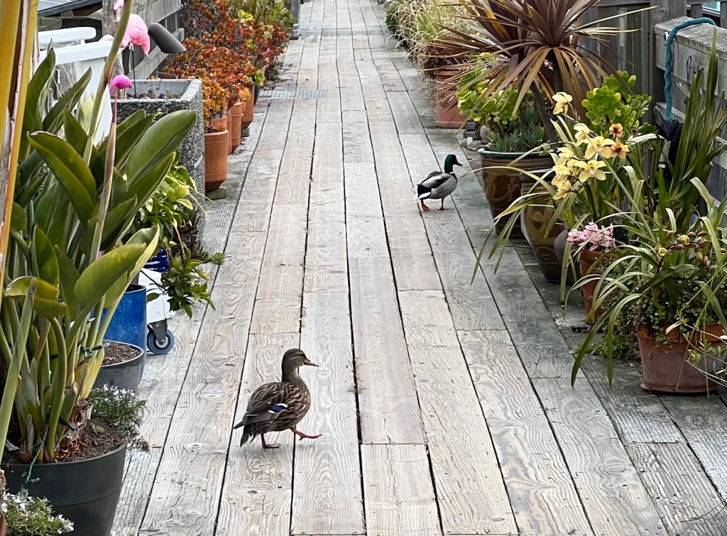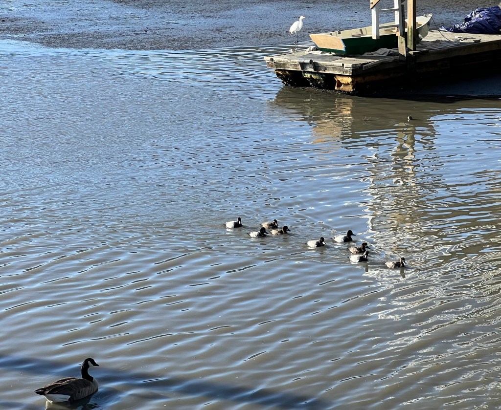 This morning, high tide, birds were swimming all around my floating home, and the boat was bobbing up and down. I felt like I was on a trampoline, and of course, like life, that changed.
