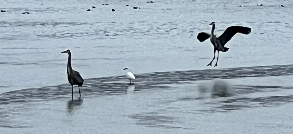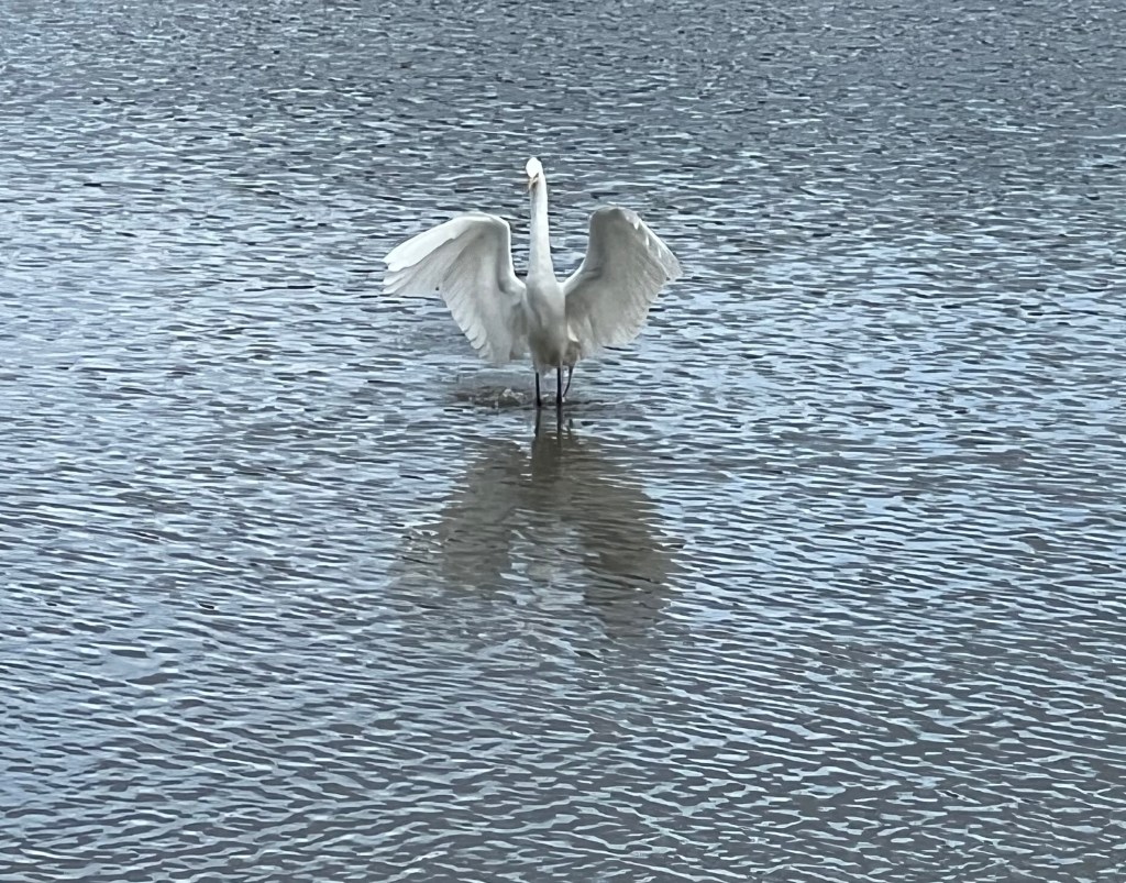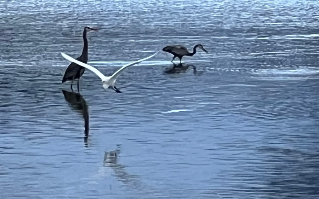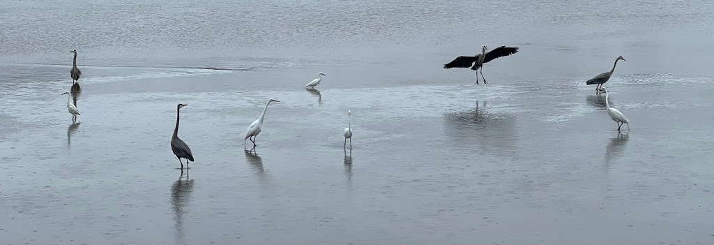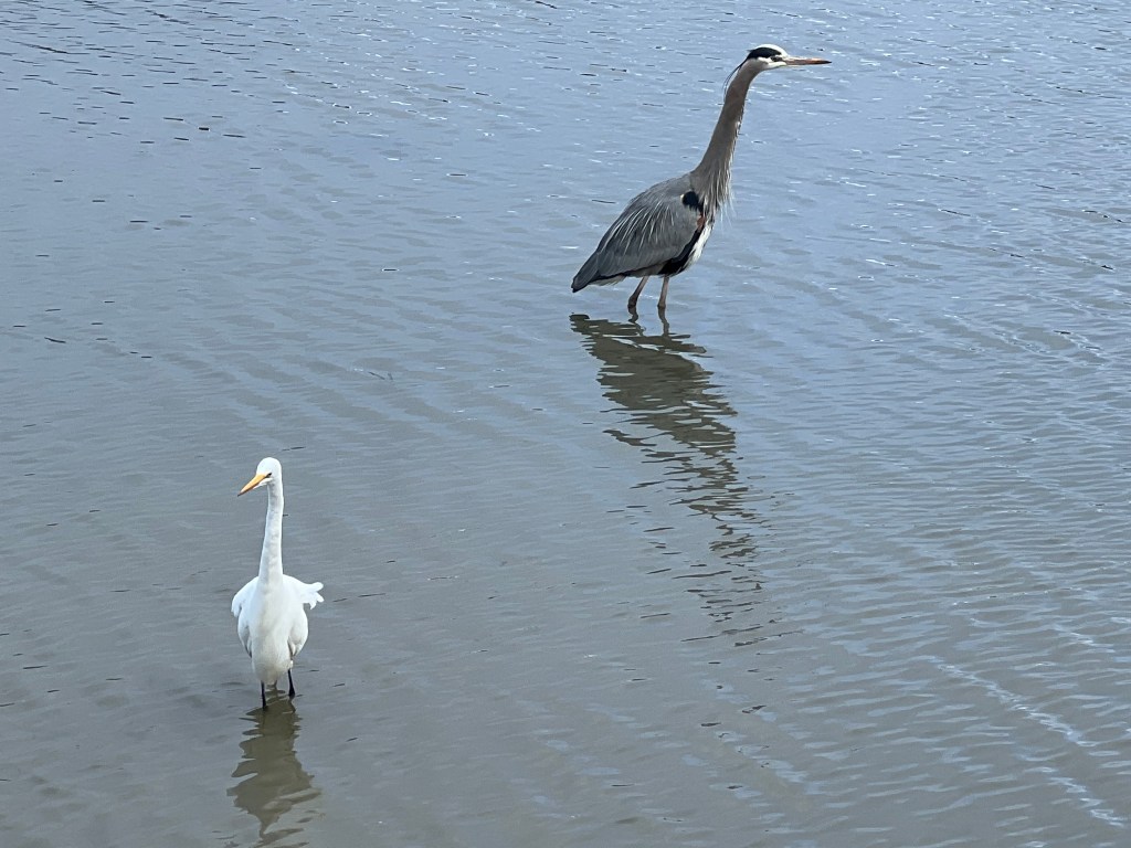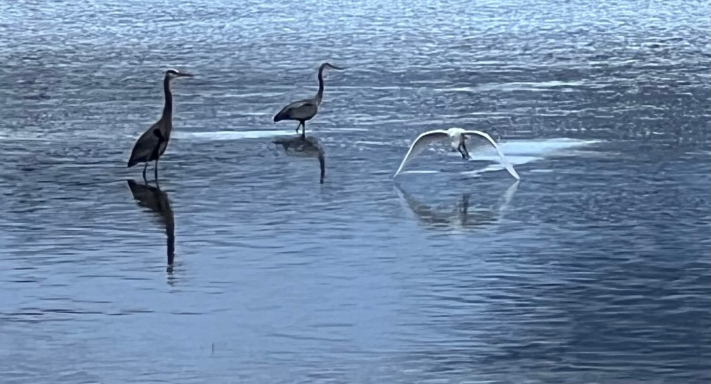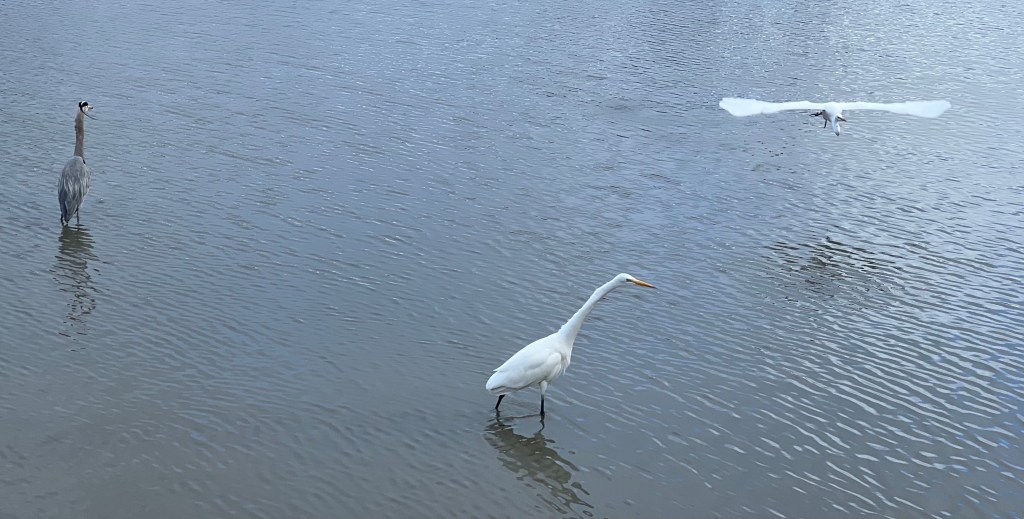 I watch egrets and herons stand still, maybe take a step and then, another, until, and then … a fish!