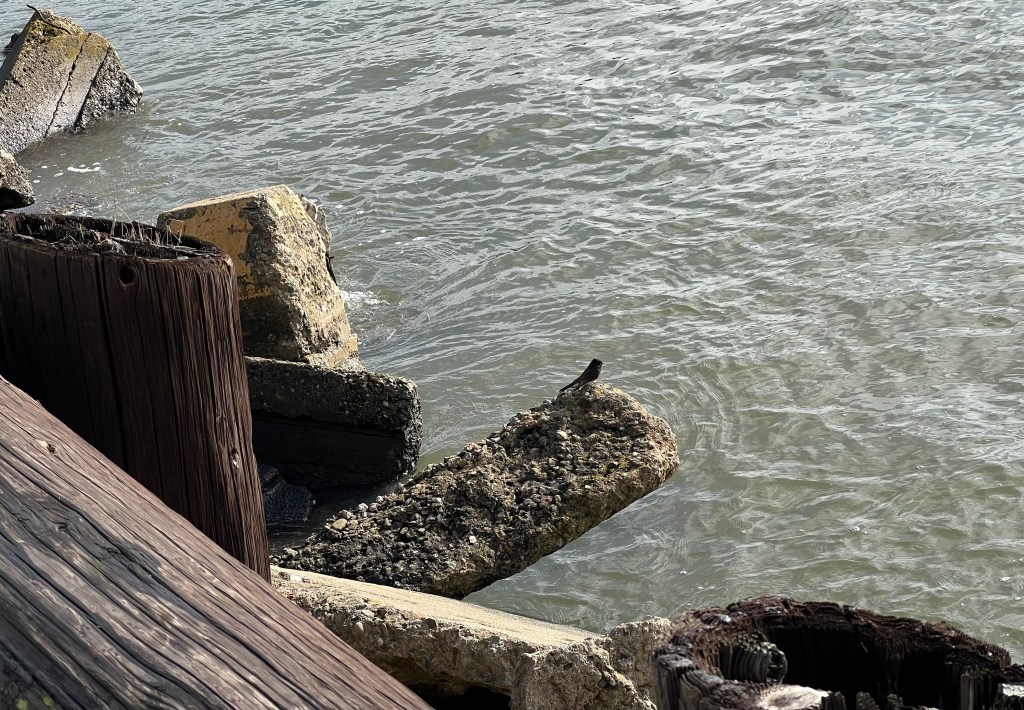 CirclingWalking along the waterfront, I turn my head and see a perching friendPlants line the dock as ropes intertwine below Honoring Entry