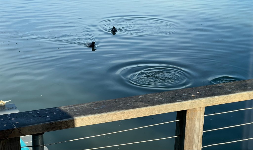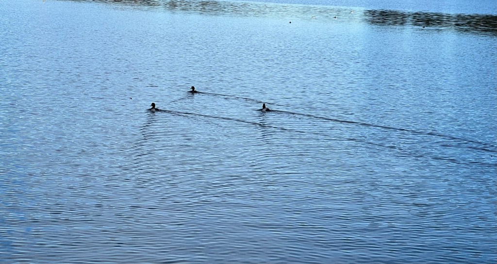 Today my abode is surrounded with ducks and coots. Their niche is high tide. They dive down leaving rippling circles and then pop up again. I’m reminded to go deeply within to renew and feed, and then pop up to air and share. There’s so many birds popping up and diving down, I can’t stop smiling. It’s hysterical. I’m surrounded with joy, as my head and heart bob up and down with their rhythm, and companionship.