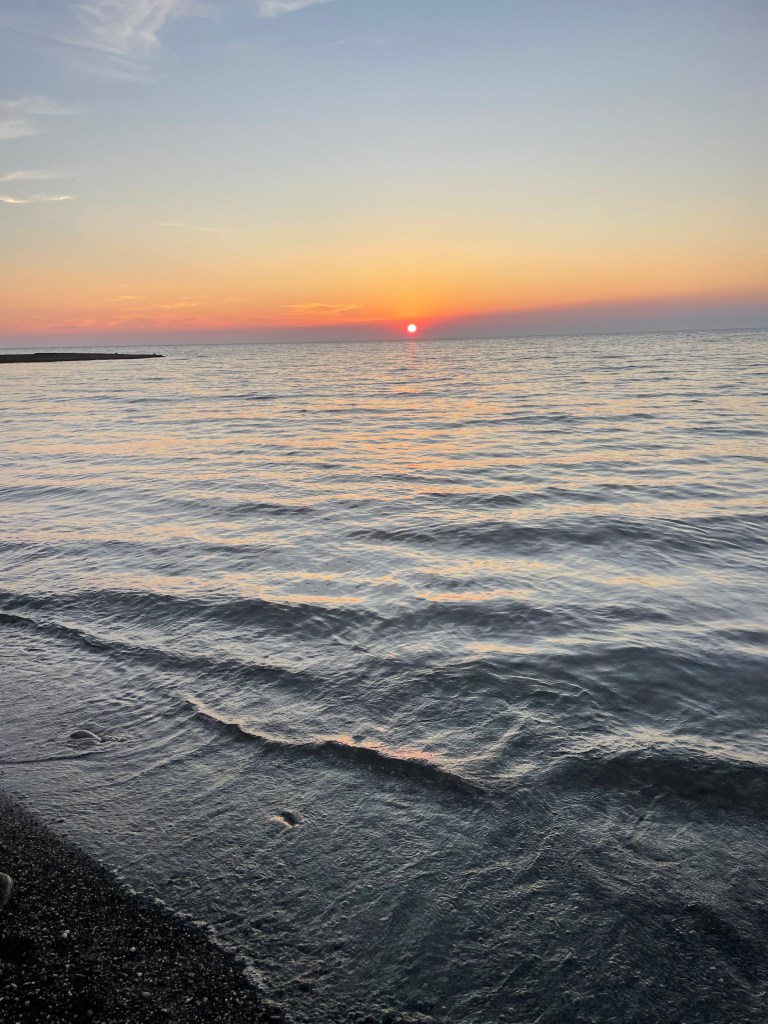 My niece and her canine companion camping by Lake Erie to enjoy the sunset.