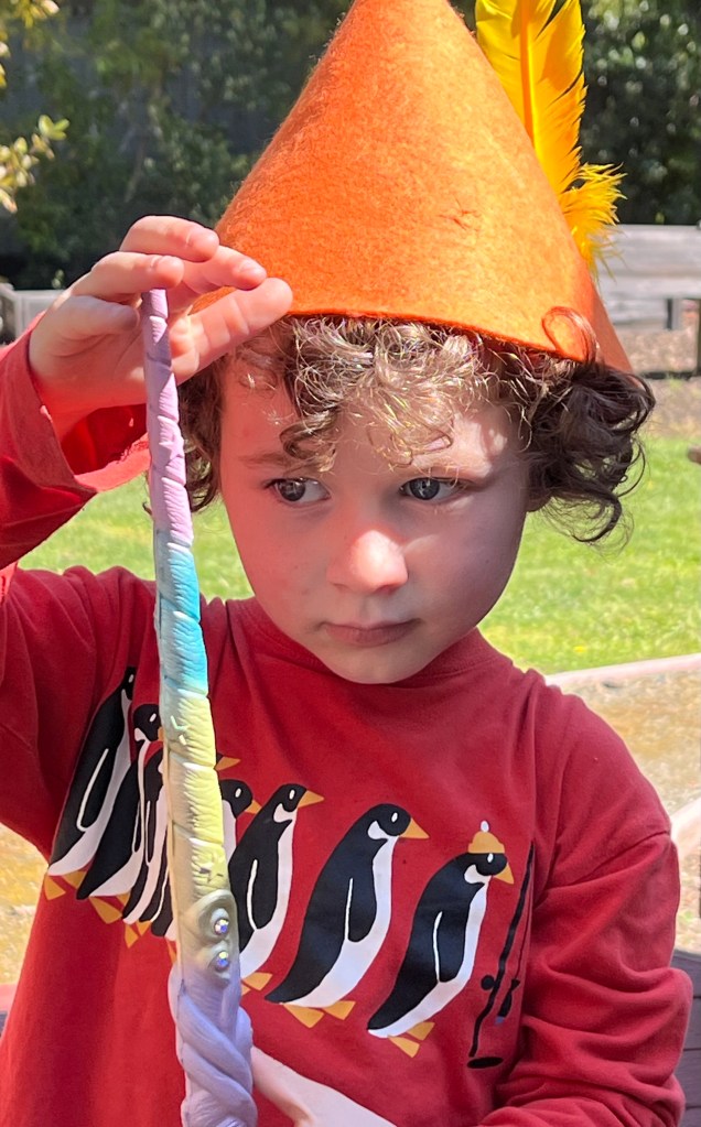 Robin Hood with a Unicorn Horn Magic Wand No matter how many Easter eggs and toys abound, there’s nothing to equal a stick!