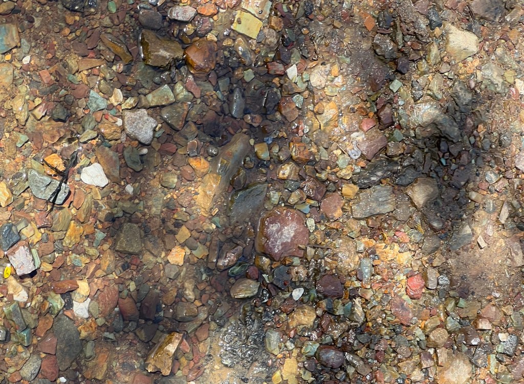 Entering the TrailImages in the CreekFairy mushrooms light up in decaying a log Sunlight leaks throughLeaning InMushrooms like mouthsWhere holes inviteImages in the bed of a creek I thought I saw two eyes, but it’s leaves caught in a webMore decomposersCamellia BudOpen with Scent